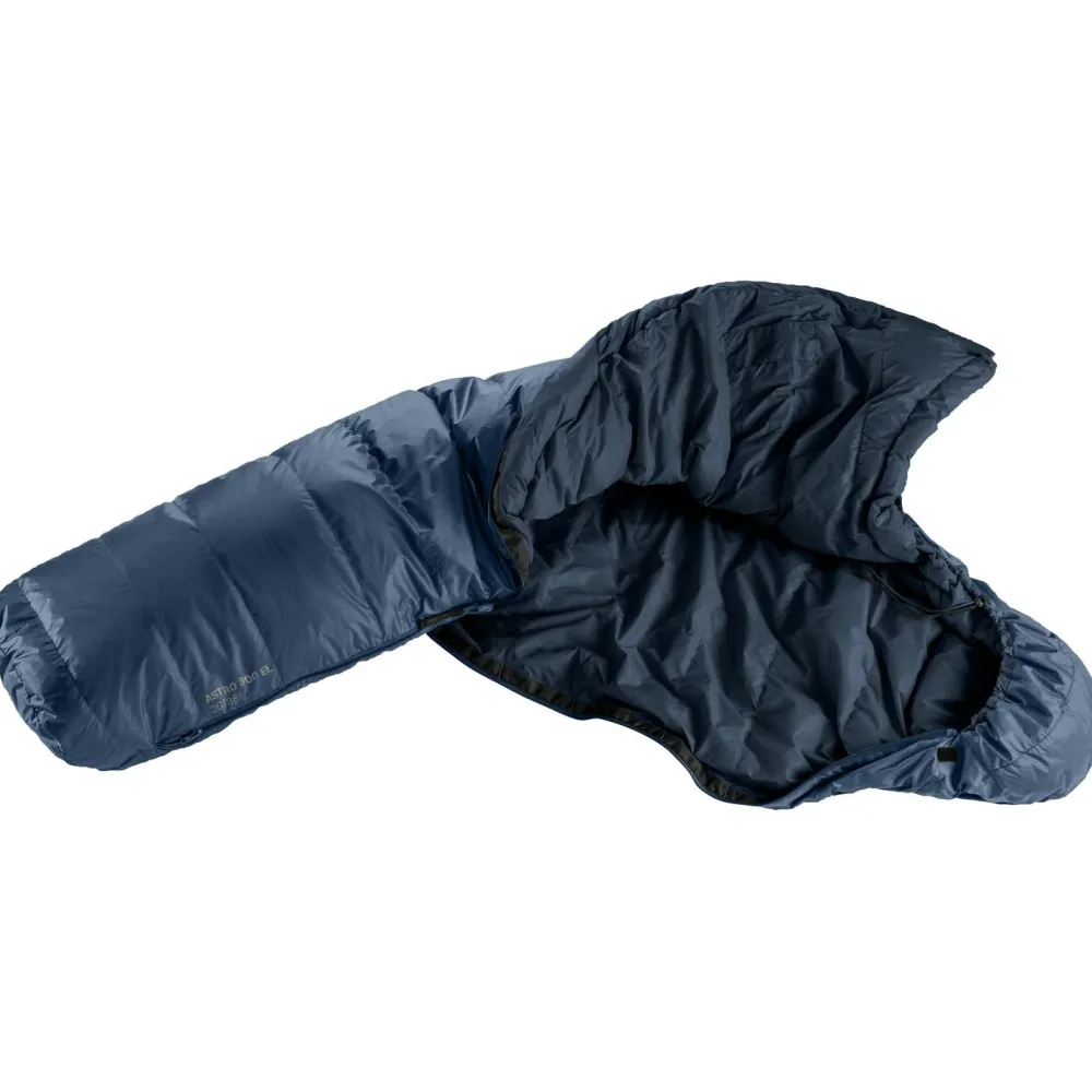 Der Astro 300 EL von Deuter ist der perfekte Daunenschlafsack für groß gewachsene Outdoorer, die ihr Gepäck mit einem warmen und dennoch leichten Schlafsack kompakt halten wollen. Seine hochwertige Daunenfüllung bietet eine hohe Fillpower und sorgt dank der effizienten Verteilung in einer Trapez-Kammerkonstruktion für eine zuverlässige 360°-Isolation ohne Kältebrücken. Hinzu kommt der robuste und komfortable Bezugsstoff, der mit einer PFAS-freien Imprägnierung gegen Wasser und Schmutz ausgestattet ist.