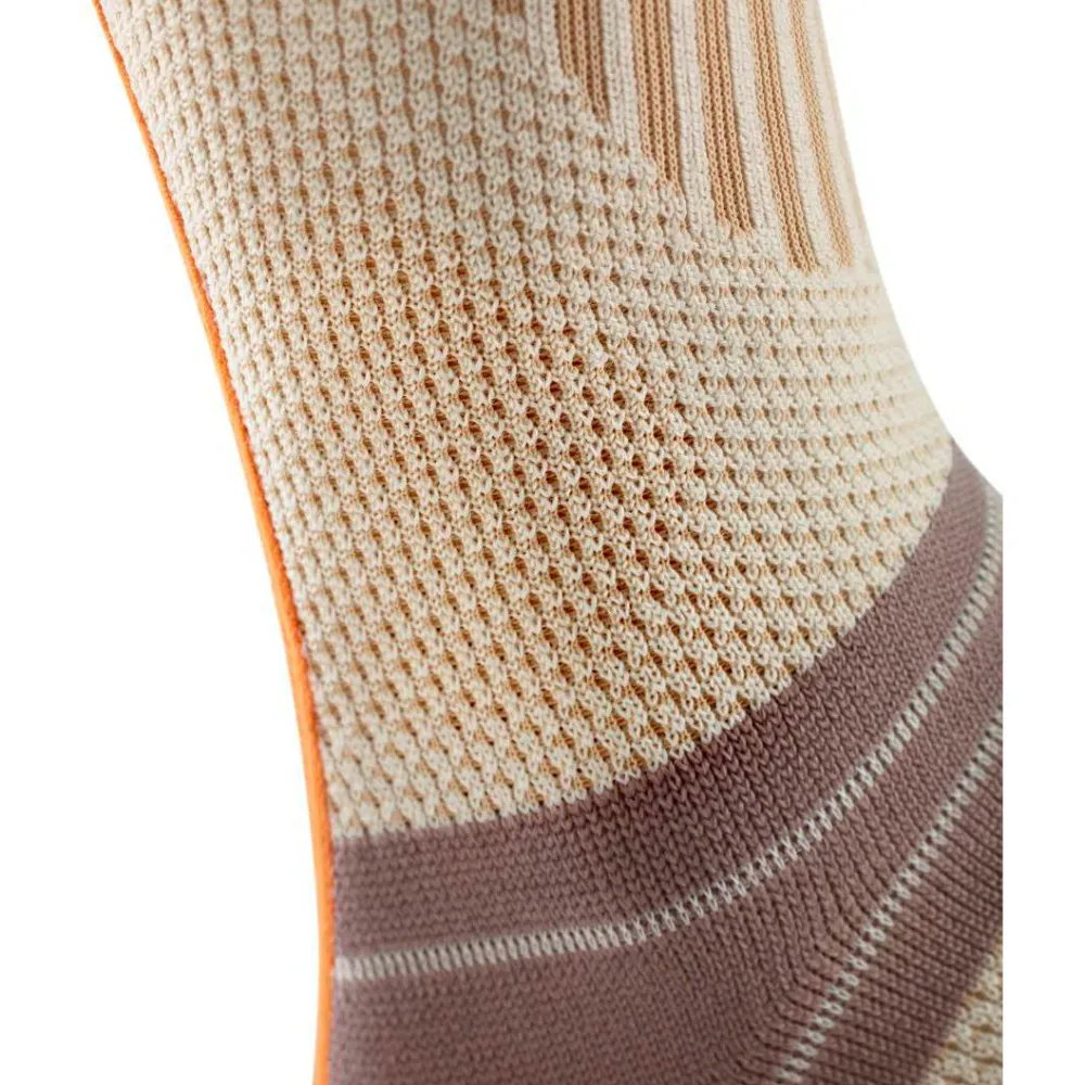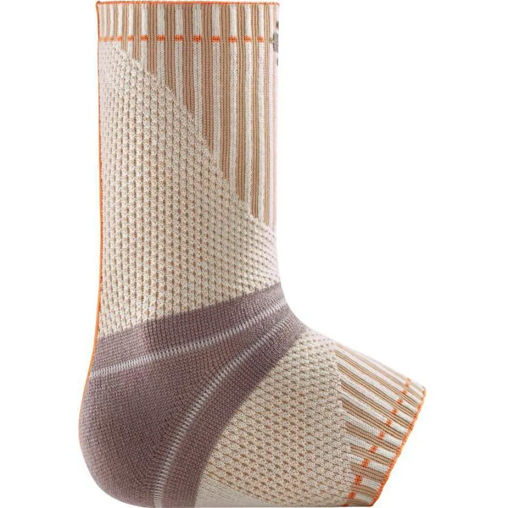 Wandern ist nicht nur ein Schritt vor den anderen, sondern es ist die pure Leidenschaft, in der Natur unterwegs zu sein und sogar Gipfel zu erklimmen. Besonders groß ist die Belastung dabei im Bereich des Sprunggelenks. Erlebe ein neues Wandererlebnis mit mehr Leichtigkeit durch die zuverlässige Unterstützung der Outdoor Ankle Support Bandage von Bauerfeind Sports. Durch ihr Kompressionsgestrick mit Merinowolle unterstützt die Bandage zum Wandern Deine Gelenkwahrnehmung im Sprunggelenk und wirkt stabilisierend auf den Knöchel. Zudem hilft das Kompressionsgestrick den auftretenden Druck gleichmäßig zu verteilen.