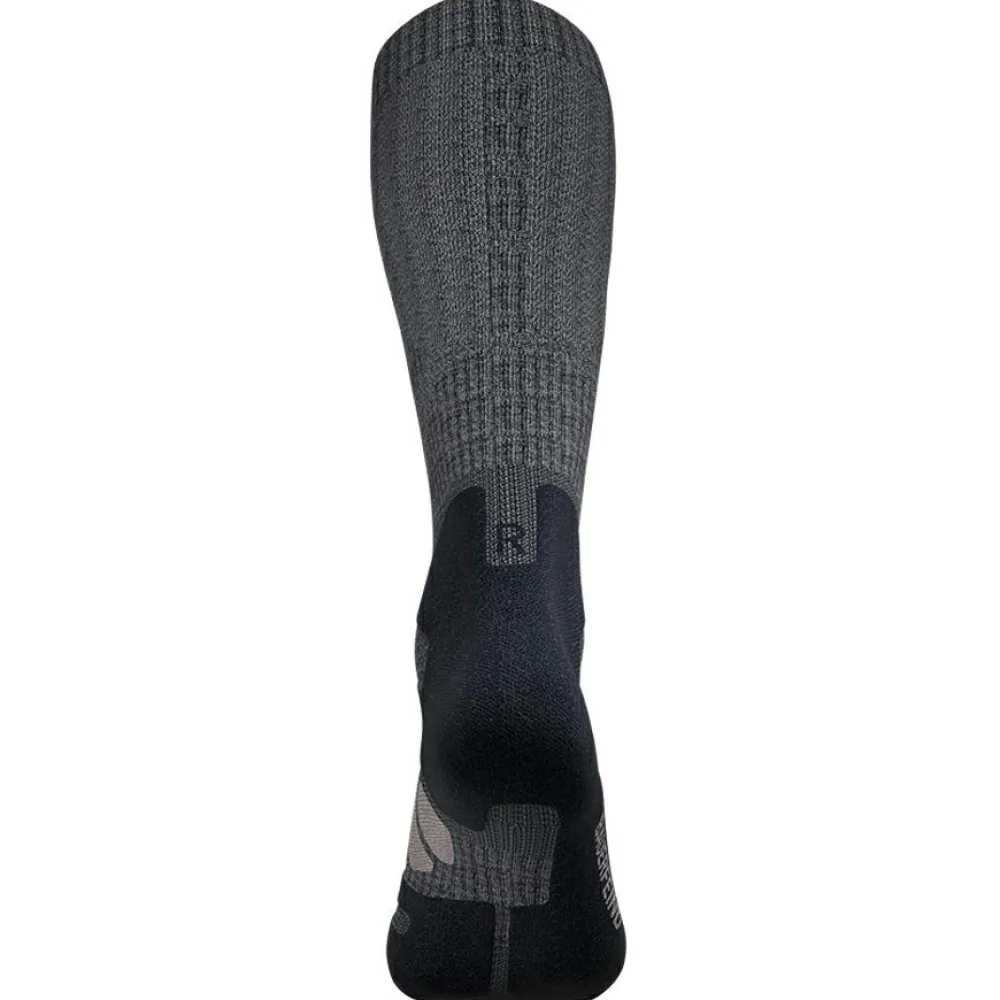 Die Infinity Zone unterstützt leicht den Bereich des Sprunggelenks und sorgt für Sicherheit auf jedem Untergrund. Die Komfortzonen Relief Sole, Instep Comfort und Heel Protection schonen die Fußsohle und reduzieren die Druckbelastung auf den Spann und die Ferse beim Aufsetzen und Abrollen des Fußes im Outdoorschuh. Die Aussparung Achilles Comfort reduziert gezielt den Druck auf die Achillessehne. Die Kompressionsstrümpfe sitzen passgenau auf der Haut und wirken dadurch optimal bei längeren Wanderungen.