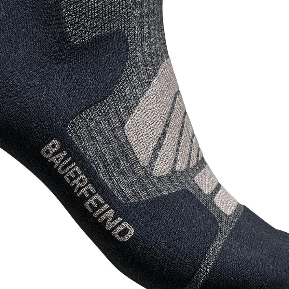 Die Bauerfeind Sports Outdoor Merino Compression Socks geben durch spezielle Kompressionszonen Power für Wanderungen auf jedem Terrain. Die gezielte Kompression fördert die Durchblutung und verbessert die Muskelökonomie. So ermüden die Waden langsamer und bleiben auf langen Touren leistungsfähiger. Der hohe Anteil an wohltuender Merinowolle bietet hervorragenden Tragekomfort: Die Naturfaser hält die Füße trocken und frisch – ein wahres Naturtalent mit Klimaregulation.