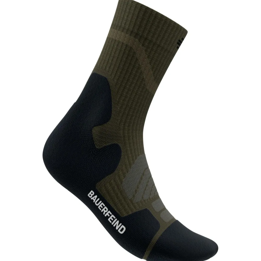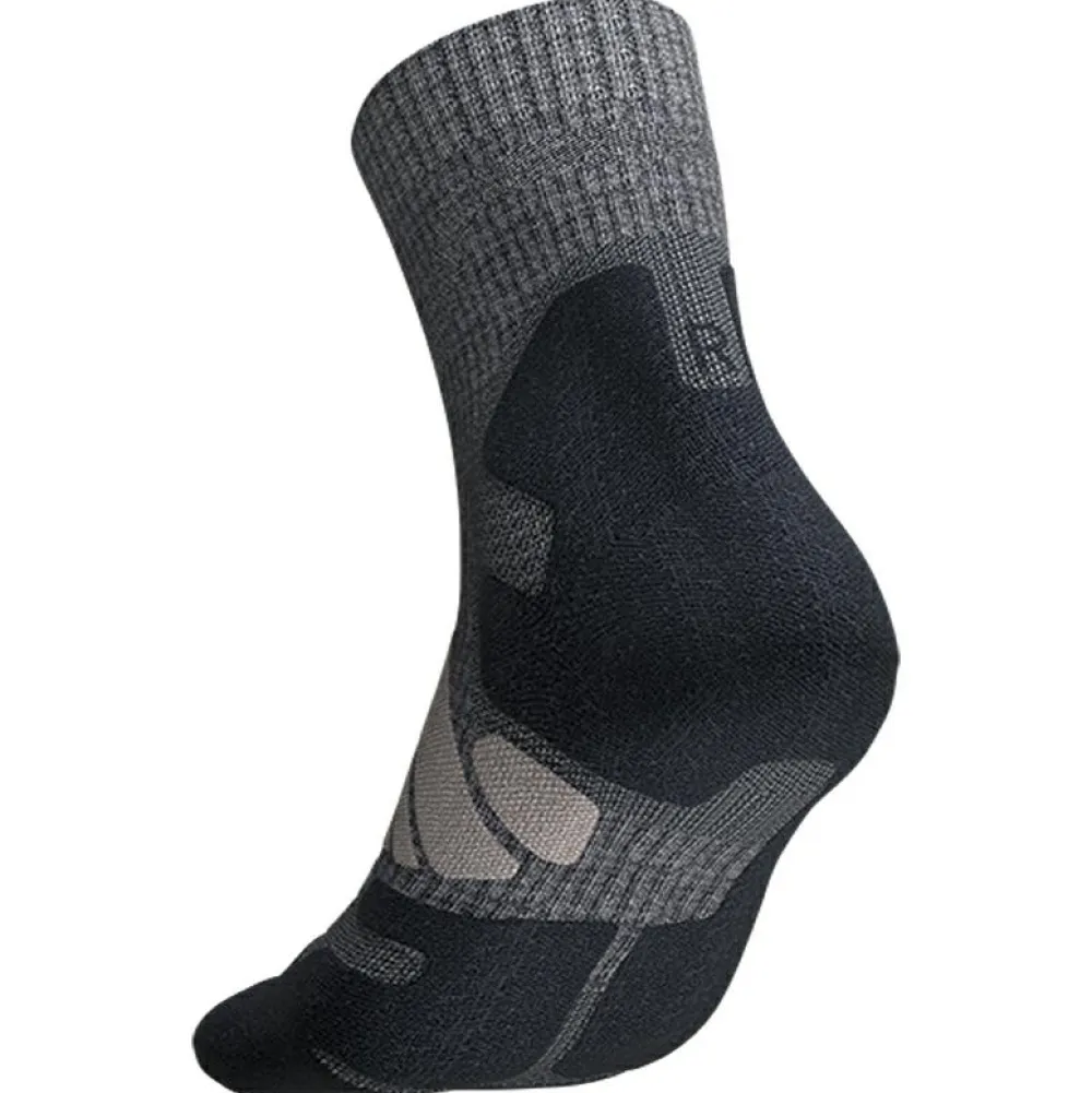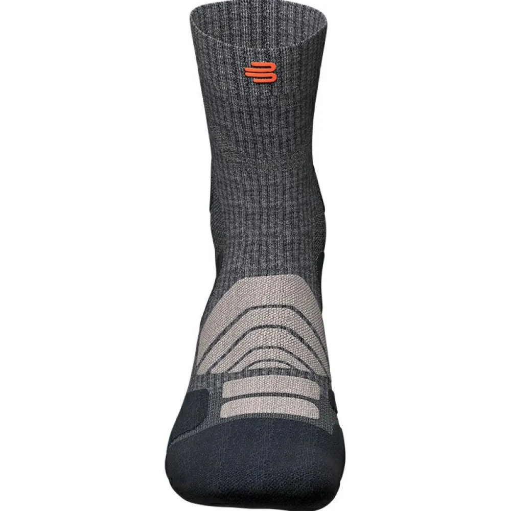 Die Bauerfeind Sports Outdoor Merino Mid Cut Wandersocken sorgen für maximale Performance und zuverlässigen Tragekomfort auf jedem Terrain. Die Infinity Zone unterstützt leicht den Bereich des Sprunggelenks und sorgt für Sicherheit auf jedem Untergrund. Der hohe Anteil an wohltuender Merinowolle bietet hervorragenden Tragekomfort: Die Naturfaser hält die Füße trocken und frisch – ein wahres Naturtalent mit Klimaregulation. Die Komfortzonen Relief Sole, Instep Comfort und Heel Protection schonen die Fußsohle und reduzieren die Druckbelastung auf den Spann und die Ferse beim Aufsetzen und Abrollen des Fußes im Outdoorschuh. Die Aussparung Achilles Comfort reduziert gezielt den Druck auf die Achillessehne.