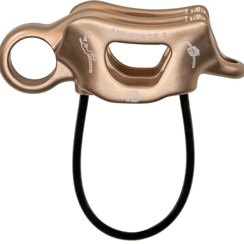 Das Air Force 3 von Beal schützt zuverlässig vor unkontrollierten Abstürzen in der Vertikalen. Das Sicherungs- und Abseilgerät ermöglicht es beispielsweise dem Sichernden am Standplatz, ein oder zwei Nachsteiger unabhängig voneinander selbstblockierend zu sichern. Dazu besitzt es vier Seilführungen, zwei mit V-förmigen Bremsrillen, die ein dosiertes und kraftsparendes Halten bzw. Ablassen ermöglichen. Die kleine Öffnung vereinfacht das Lösen der Seile unter Spannung. Die zwei Seilführungen in V-Form ermöglichen ein leichteres Seilausgeben und dennoch ein kontrolliertes und wirkungsvolles Bremsen, um die Energie beim Auffangen des Vorsteiger-Sturzes abzufangen. Die zwei großen und glatten Seilführungen sorgen für einen kantenfreien Seilverlauf. Wenn bei Nutzung der V-förmigen Seilführung mit Rillen die Bremswirkung zu groß ist, kann das Air Force 3 gedreht und die breite Seilführung verwendet werden.