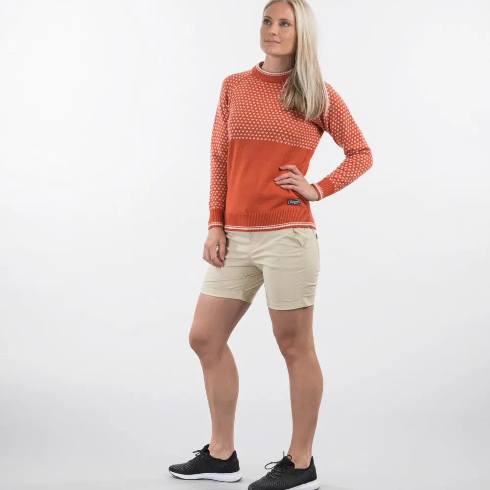 Warm, weich und mit klassischem Look: der Women’s Alvdal Wool Jumper von Bergans! Der vielseitige Wollpullover besteht aus feiner Merinowolle, die mit ihrem tollen Tragegefühl und dem natürlichen Temperaturausgleich besticht. Der Merinopullover ist oben und unten in verschiedenen Techniken gestrickt, sodass er einen traditionellen und dennoch unverwechselbaren Look hat. All das macht den Women’s Alvdal Wollpullover zu einem äußerst komfortablen und vielseitigen Begleiter!