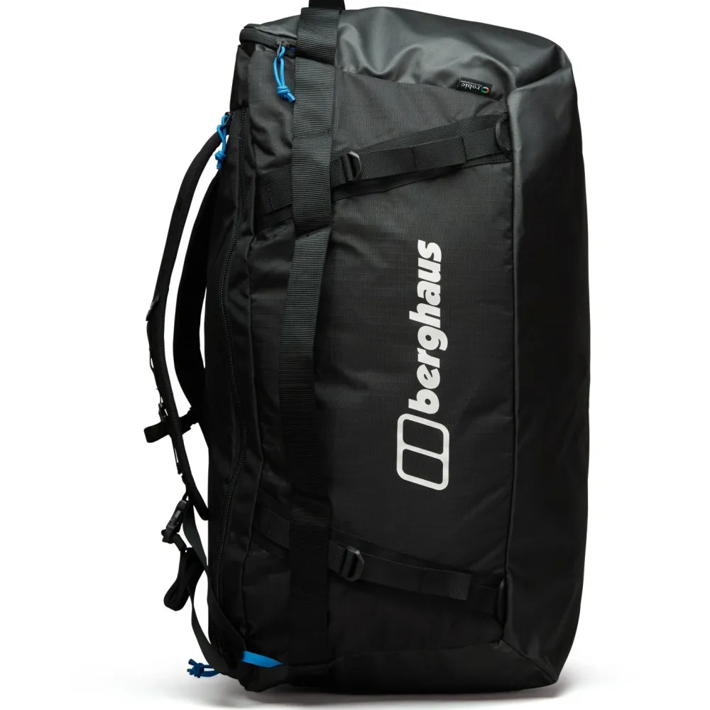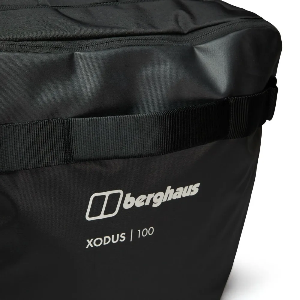 Die Xodus Holdall 100 von Berghaus ist die ideale Tasche für den Transport Deiner Ausrüstung auf Reisen. Mit einem abschließbaren Reißverschluss bietet sie eine deutlich erhöhte Sicherheit für Deine persönlichen Gegenstände. Die Innentaschen sind perfekt geeignet, um Wertsachen diskret aufzubewahren. Ergonomisch geformte Schultergurte können für den Transport im Fahrzeug in einer speziellen Tasche verstaut werden, sodass dieses Holdall vielseitig einsetzbar ist.Hergestellt aus karbonatbeschichtetem Robic-Nylongewebe bietet die Tasche zusätzliche Haltbarkeit und Abriebfestigkeit, damit sie auch stärkerer Beanspruchung standhält. Zurrpunkte ermöglichen das Sichern der Tasche auf Reisen und das Anbringen zusätzlicher Ausrüstung an der Außenseite. Die seitlichen Kompressionsriemen helfen, die Masse der Tasche zu minimieren und sorgen dafür, dass alles sicher verstaut bleibt, während Du unterwegs bist.