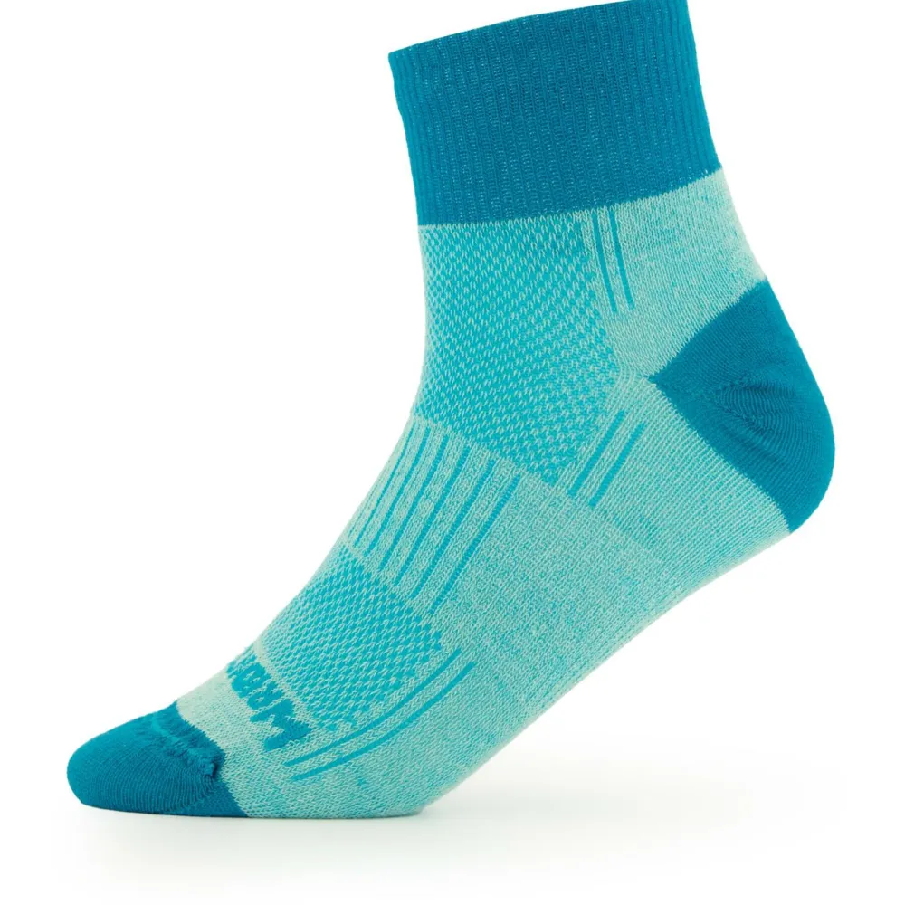 Bei leichten Wanderungen, ausgedehnten Spaziergängen, auf dem Bike oder auch beim Joggen sind die Coolmesh II Quarter Socken von Wrightsock genau das Richtige! Diese Socken bieten Dir durch ihr dünnes, doppellagiges Material einen angenehmen und trockenen Tragekomfort.