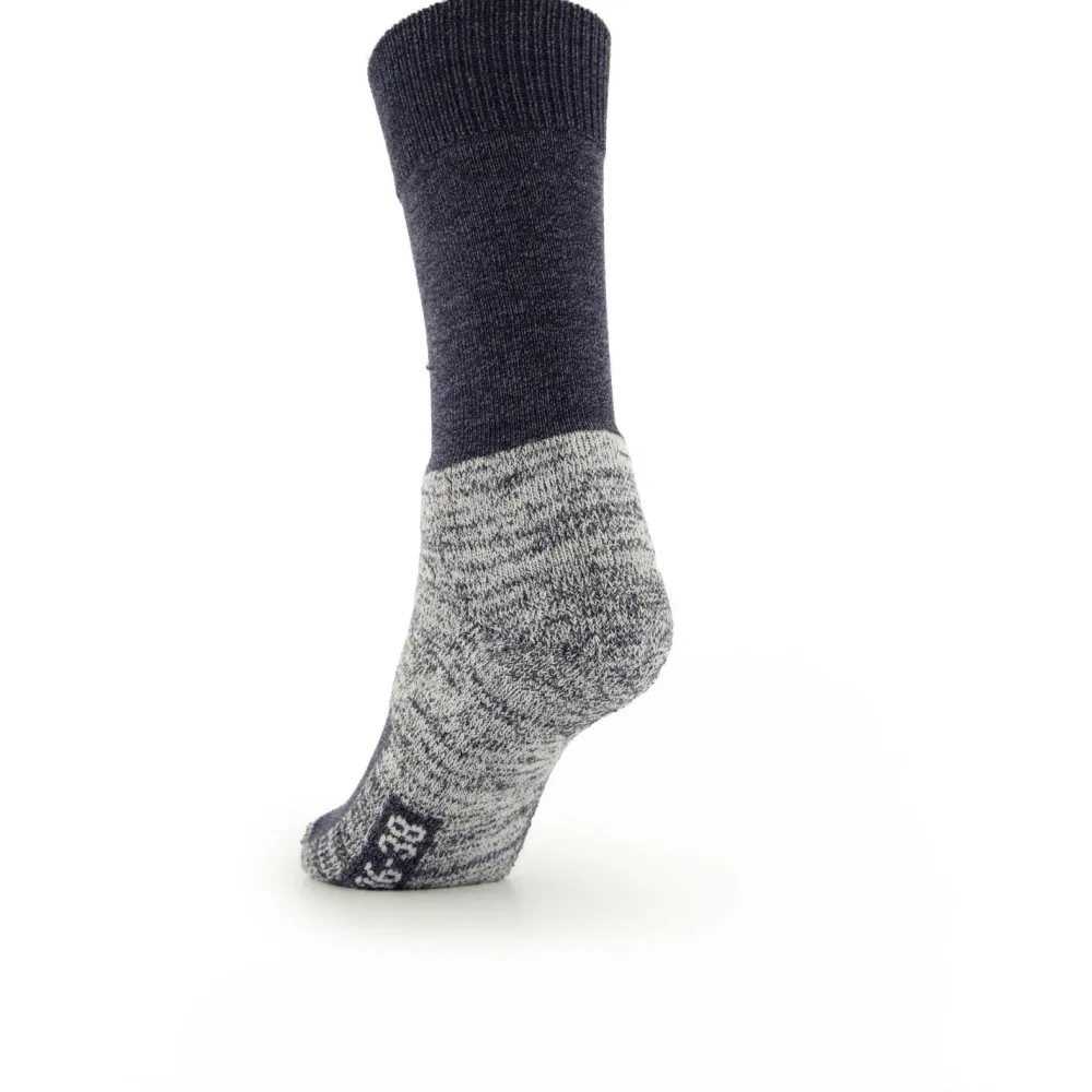 Weiche Plüschfütterung für Komfort – mit den Rohner Fibre Tech Trekkingsocken! Die Socken isolieren hervorragend gegen Kälte und sorgen an stark beanspruchten Stellen für eine gute Polsterung. Vor allem am Rist sorgt das weiche Plüschmaterial dafür, dass die Wanderschuhe keine Druckstellen hinterlassen. Eine Zehenkonstruktion ohne Nähte vermeidet eine Bildung von Blasen durch Reibung oder unangenehmes Kratzen. Durch einen weichen Abschlussrand an der Wade schneidet auch an dieser Stelle nichts ein! Durch das saugfähige Material wird Wasserdampf vom Körper aufgenommen und nach außen abtransportiert. So bleibt die Haut trocken und schön warm! Vor allem für Schuhe mit einer atmungsaktiven Membran sind die Socken so bestens geeignet. Ob auf Schneeschuhtour, unterwegs mit dem Rucksack in den Bergen oder einfach nur im Alltag zur Arbeit – die Fibre Tech Trekkingsocken garantieren ein angenehmes Tragegefühl! Achtung: für die Socken gibt es eine eigene Größentabelle, die von der Standard-Tabelle des Herstellers abweicht.S = EU 36 – 38M = EU 39 – 41L = EU 42 – 44XL = EU 44 – 46XXL = 47 – 49