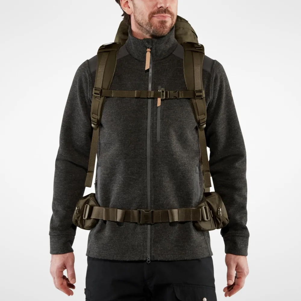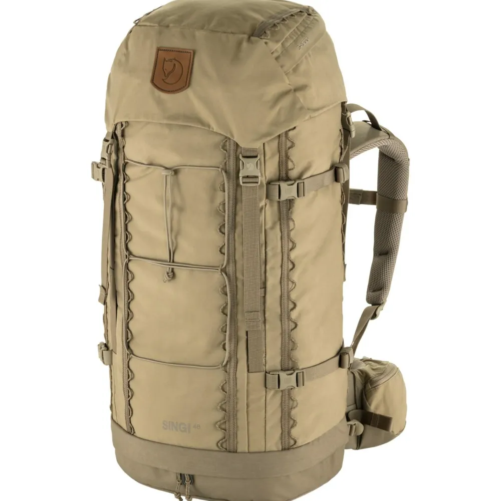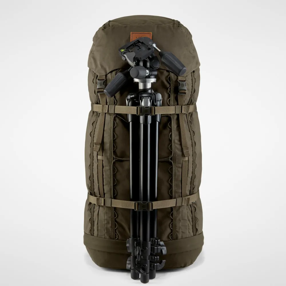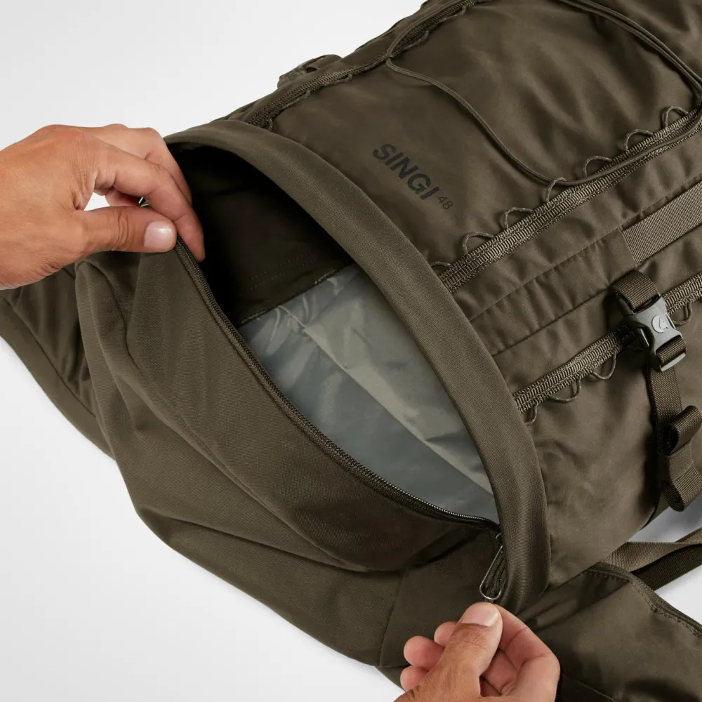 Mit jeder Menge Platz und einem robusten Rucksack, können die Trekkingtouren mit dem Singi 48 von Fjällräven kommen. Durch die Öffnung an der Unterseite des Rucksacks, kann zu jeder Zeit auch von unten Zugriff zum Hauptfach stattfinden. Die seitlichen Kompressionsriemen ermöglichen eine Fixation des Rucksacks und verhindern störende Hebelwirkungen beim Tragen. Der gepolsterte Hüftgurt verfügt über zwei RV-Taschen und liegt sehr angenehm an. In Kombination mit dem stabilen Holzrahmen und dem gepolsterten Rückenteil ermöglicht der Rucksack einen hohen Tragekomfort auch bei langen Einsätzen. Das integrierte Regencover lässt sich bei langen Regenfällen einfach über den Rucksack ziehen und schützt Denselben und damit auch die darin transportierten Gegenstände vor Nässe. Neben den vielen funktionalen Eigenschaften sieht der Rucksack einfach lässig aus und macht eine hervorragende Figur.