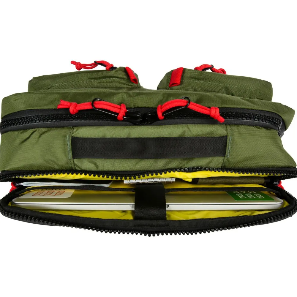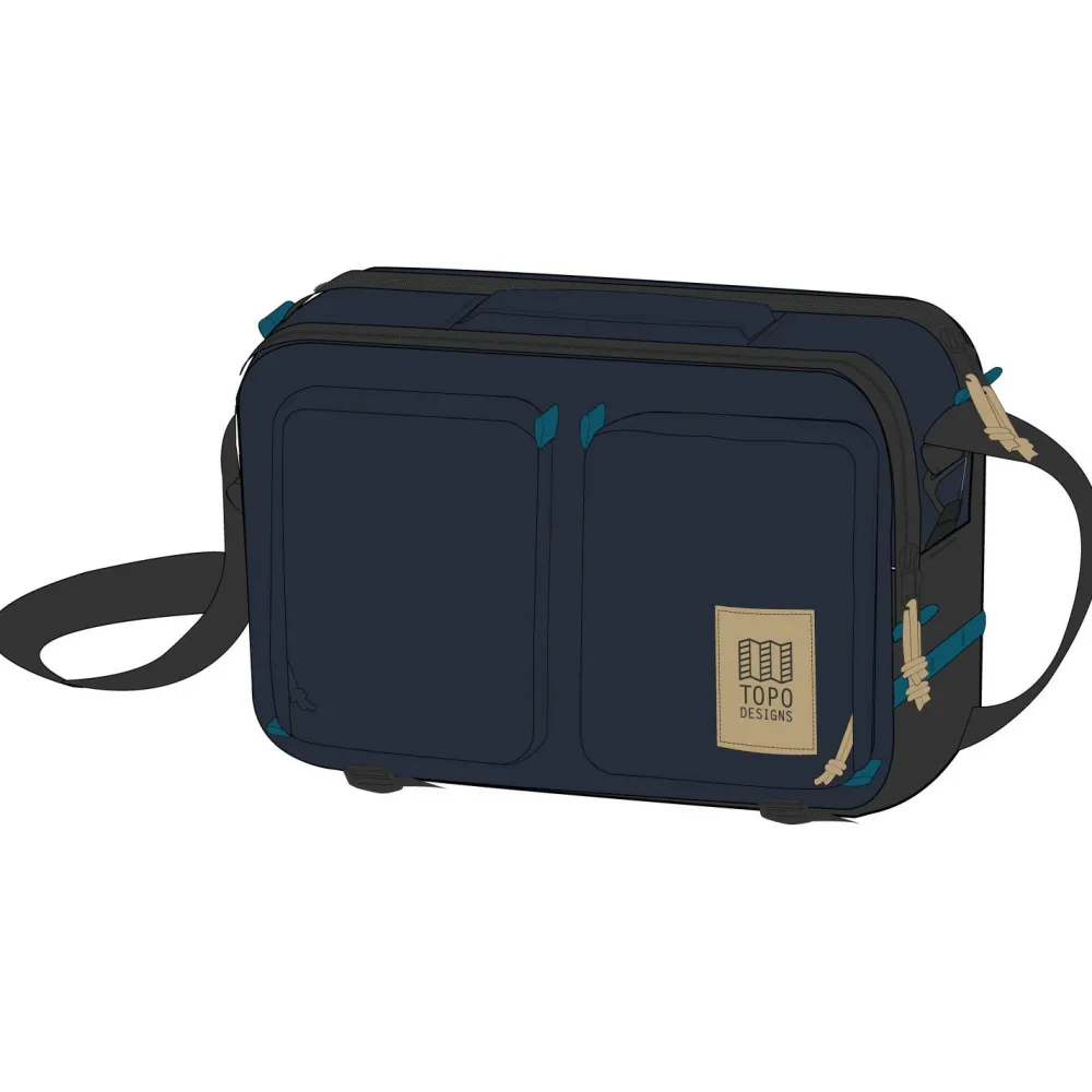 Mit den praktischen Außentaschen und dem farbenfrohen Design ist die Tasche Global Briefcase von Topo Designs eine mutige Ergänzung für jede Taschenkollektion. Recyceltes Material trifft auf reisefreundliche Funktionen und schaffen eine Alltagstasche, die alles mitmacht. Sie ist für den Weg ins Büro ebenso geeignet wie für den Weg durch die Bahnhofshalle.