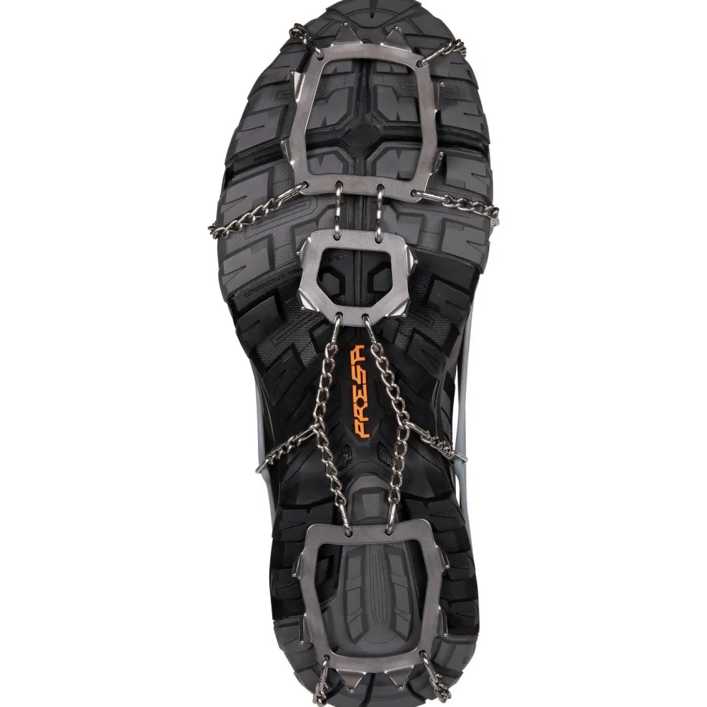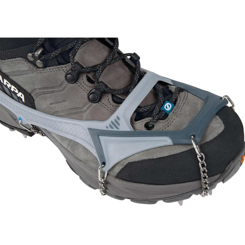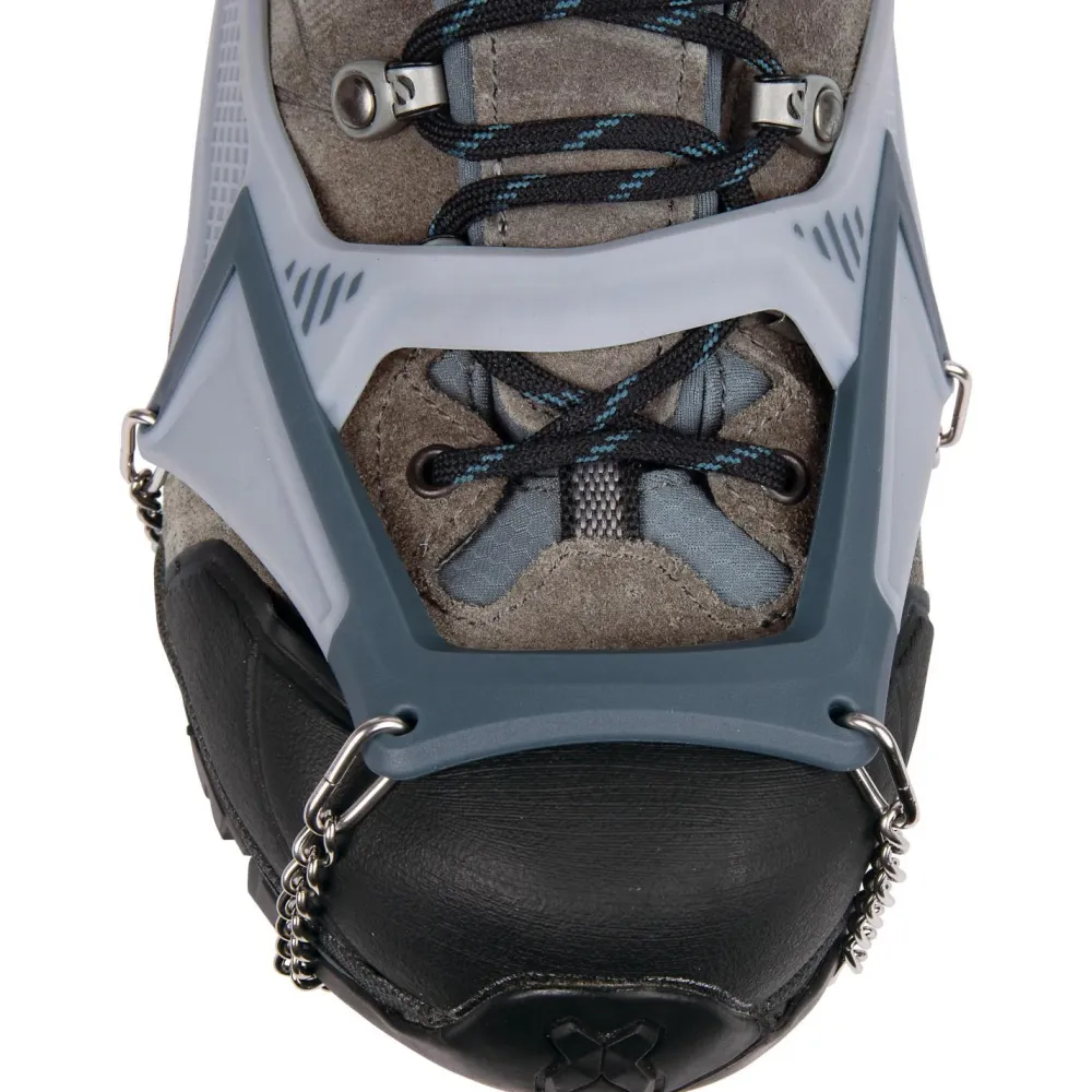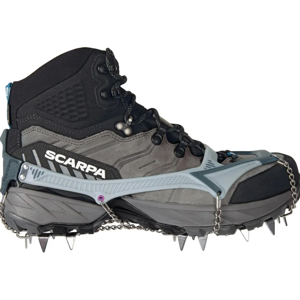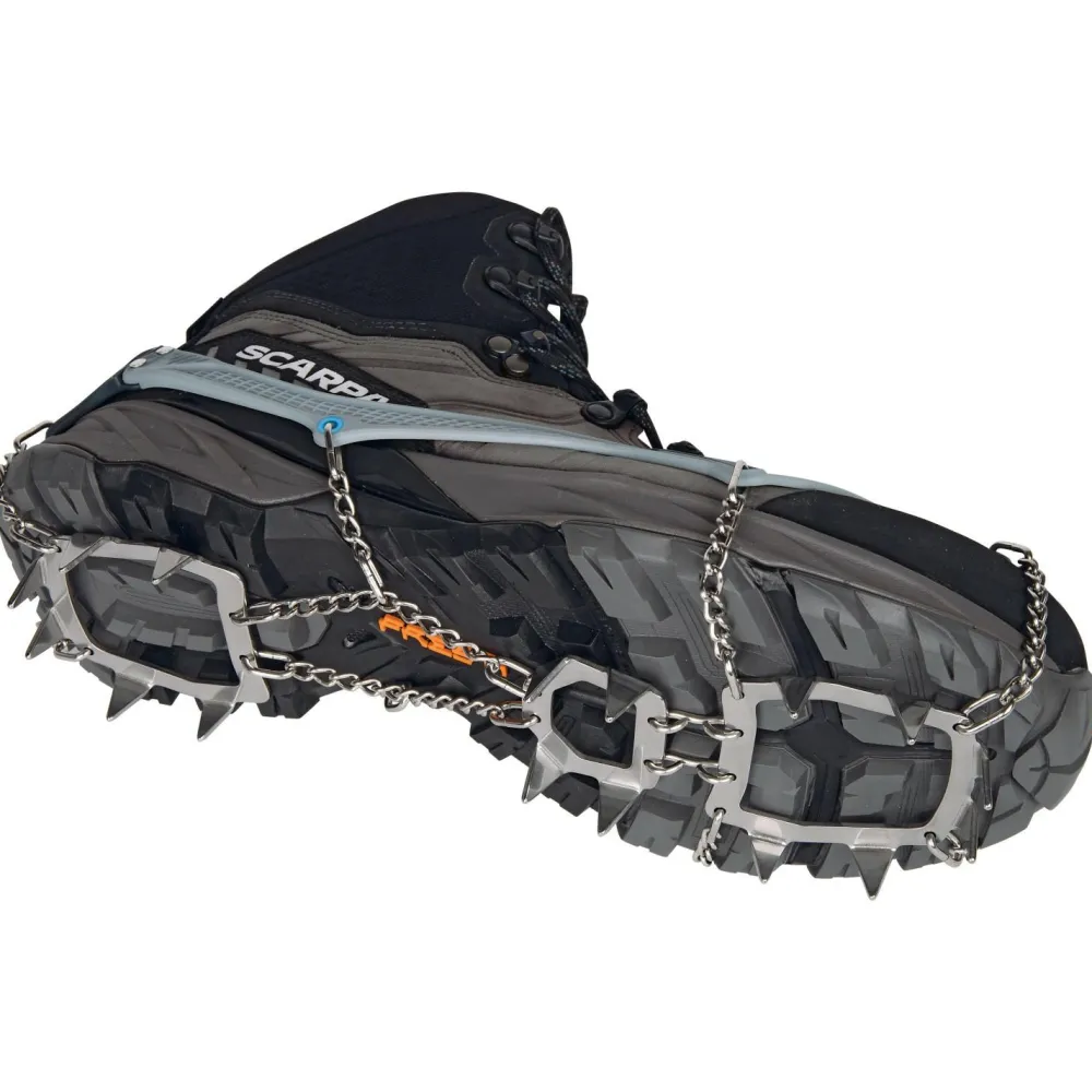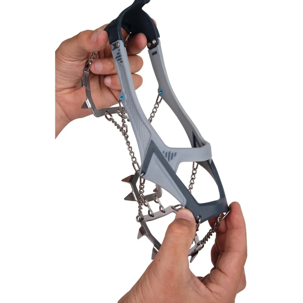 Die 16 Zacken sind so angeordnet, dass sie die Traktion, den seitlichen Halt und das Abbremsen auf Schnee, Eis, Schlamm, nassem Gras, Flechten oder überwachsenen Felsen optimieren. Perfekt abgerundet werden diese vielseitigen Helfer durch die mitgelieferte, leichte und kompakte Transportbox!