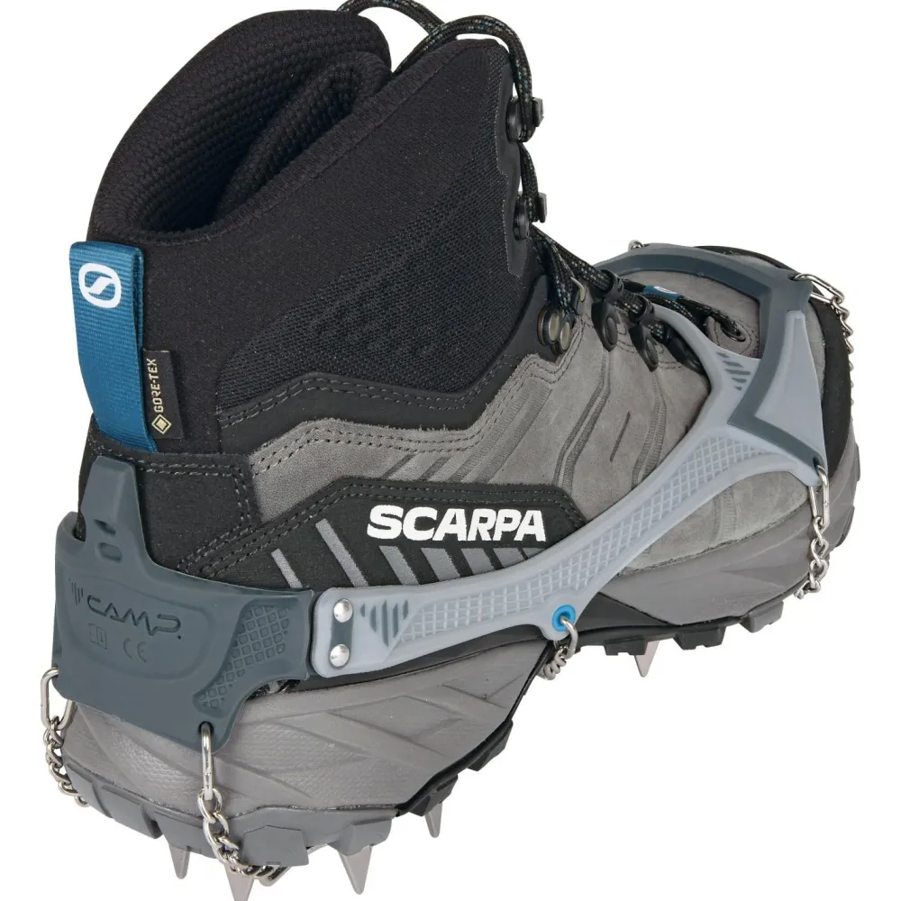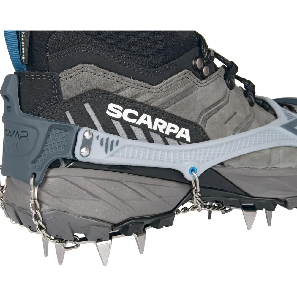 Die Ice Master Pro von C.A.M.P. sind vielseitige, leichte und leistungsstarke Grödel für anspruchsvolle Trekkings und Alpinwanderungen! Ihr innovatives 3D-Befestigungssystem aus zwei Materialien ist weicher und anschmiegsamer, wo Anpassungsfähigkeit gefragt ist, und steifer und robuster, wo Halt benötigt wird. Eine weitere Besonderheit ist die minimalistischen Struktur aus rostfreiem Stahl mit einem doppelten Gelenk am Vorderteil, die eine perfekte Anpassung an jede Sohle und deren Verformung beim Gehen ermöglicht.