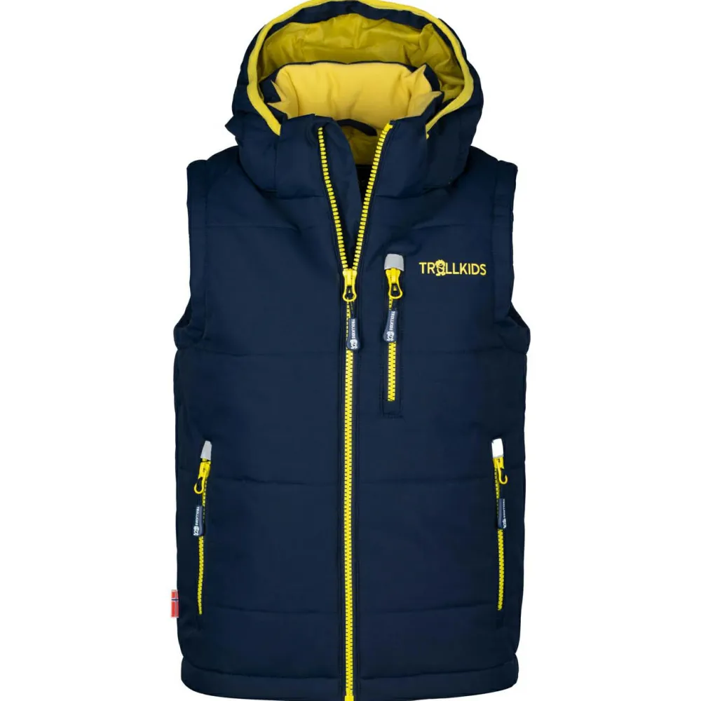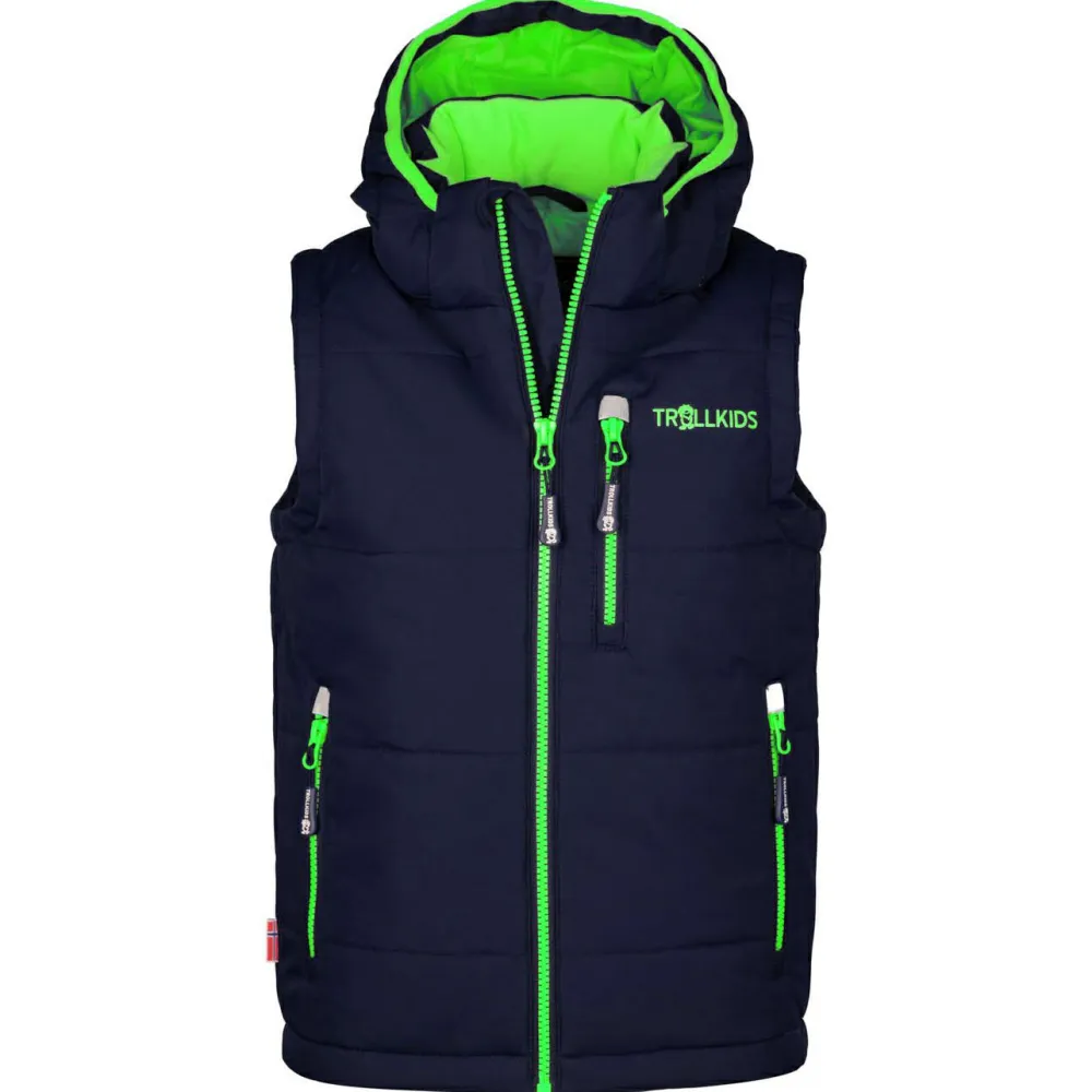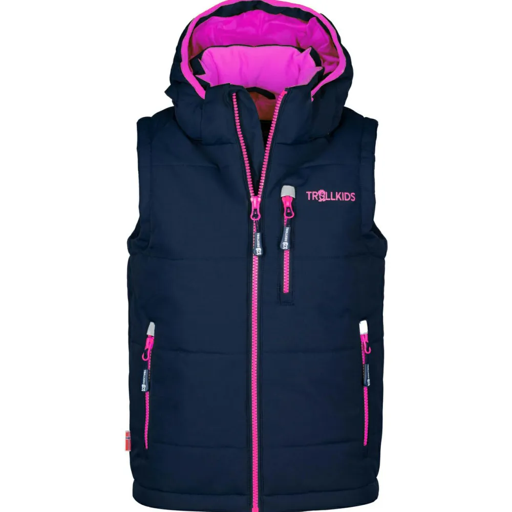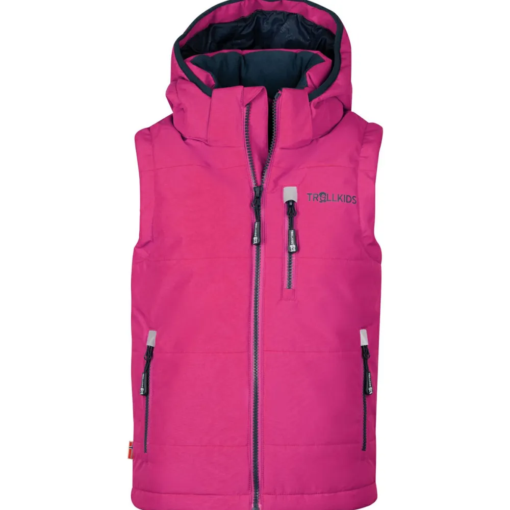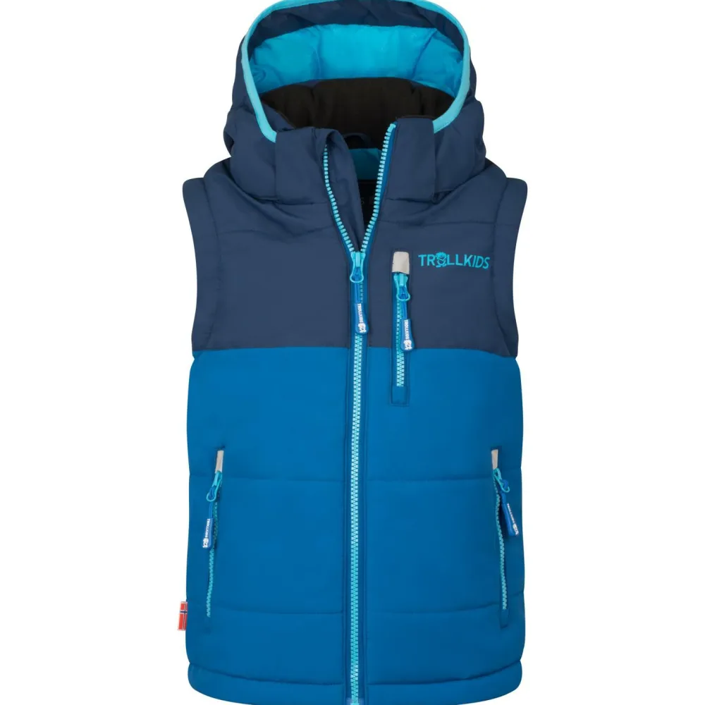 In der Übergangszeit oder bei wechselhaftem Wetter solltest Du die Kid’s Narvik Vest XT von Trollkids immer dabei haben.