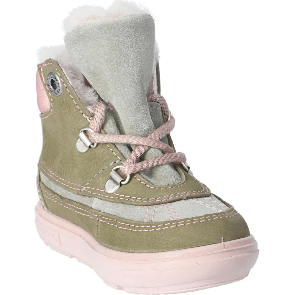 Der ideale Schuh bzw. Stiefel für ganz kleine Winterlinge! Mit dem Paolo von Pepino by Ricosta sind Deine Kinder bestens gerüstet, um Matsch, Schnee und Eis zu trotzen, respektive eine Riesen- Gaudi mit den Elementen haben! Das ökologisch gegerbte TerraCare– Leder des Obermaterials gibt diesem robusten Winterstiefelchen eine richtig wanderschuhhafte Anmutung, und die SympaTex– Membran verhindert zuverlässig das Eindringen jeder Feuchtigkeit. Abgerundet wird dieses wasserdichte, warme Gesamtpaket vom kuscheligen Lammfell- Innenfutter und der herausnehmbaren Vildona-Einlegesohle, die ebenfalls wärmend wirkt. Aber was ist bei Schuhen, genauer Winterschuhen (zumal für kleine Kinder!) denn noch so wichtig? Richtig:Halt und Grip!Und selbstverständlich bietet der Paolo auch das. Denn der hohe Schaft des Stiefels gibt schon per se Halt, welcher aber durch die drei- öhsige Schnürung noch verstärkt und zudem perfekt an den Fuß angepasst wird. Und die Sohle aus robustem PU ist erstens flexibel, wodurch sie sich den natürlichen Bewegungen des Fußes bestens anpassen kann, besitzt aber auch ein kräftiges Profil, welches für ordentlich Grip sorgt. Der Winter kann kommen!