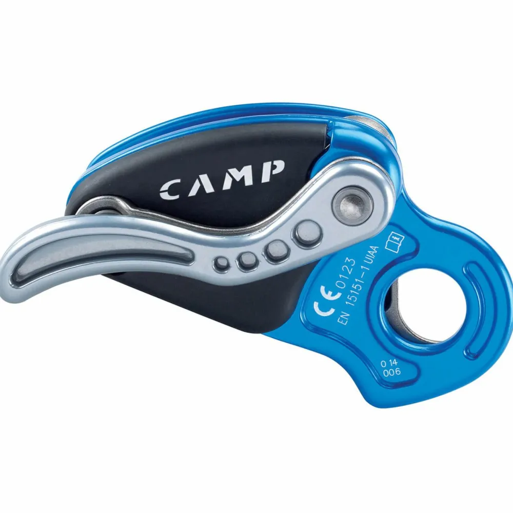 Bietet ein Plus an Sicherheit im Falle eines Sturzes – das Camp Matik! Das halbautomatische Sicherungsgerät kommt mit einem unterstützten Bremssystem, welches greift sobald ein starker Zug am Seil stattfindet. Mit einem Schnapper wird das Seilausgeben oder ‚Zumachen‘ kontrolliert, wobei das Seil im Inneren des Sicherungsgerätes durch einen Nocken festgeklemmt wird. Dabei fällt der Fangstoß äußerst gering aus und eine dynamische Sicherung ist möglich.