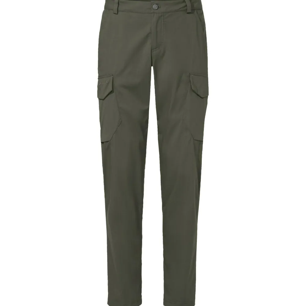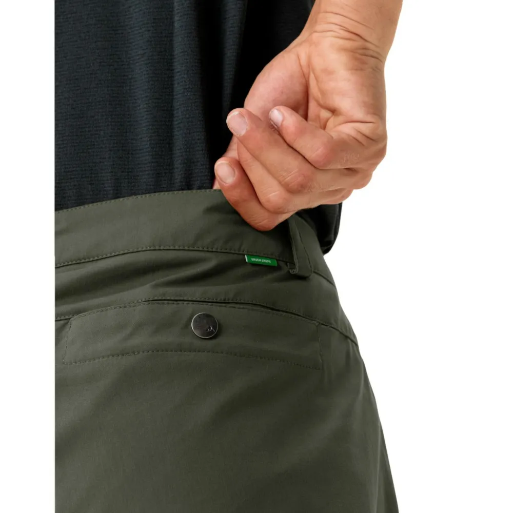 Per Knopfverschluss wird die Neyland Cargo Pants verschlossen. Zusätzlich verfügt die Trekkinghose über Gürtelschlaufen. Neben zwei offenen Fronttaschen bieten zwei praktische Seitentaschen im Cargo Stil Platz für alle wichtigen Accessoires on Tour. Zusätzlich gibt es auch noch eine Gesäßtasche mit Druckknopf an der Vaude Hose. Die Trekkinghose ist Green Shape zertifiziert und sorgt mit ergonomisch vorgeformten Knien für angenehmen und umweltfreundlichen Tragekomfort beim Wandern und Trekking.
