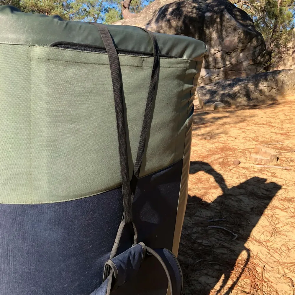 Das Pad Bundle von Snap dient dazu, zwei Crashpads auf einmal zu transportieren. Dank robuster Schnallen aus Metall ist Langlebigkeit und eine einfache Bedienung garantiert.