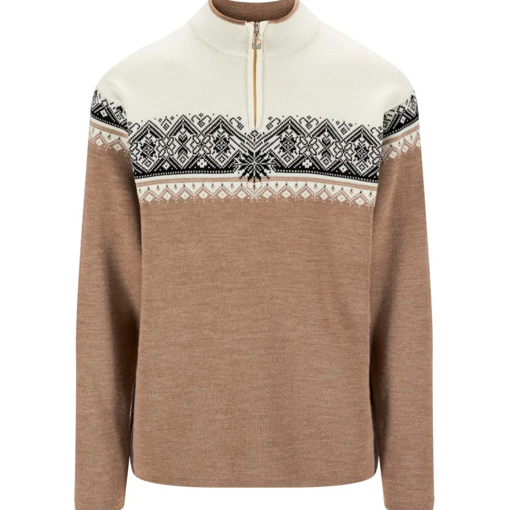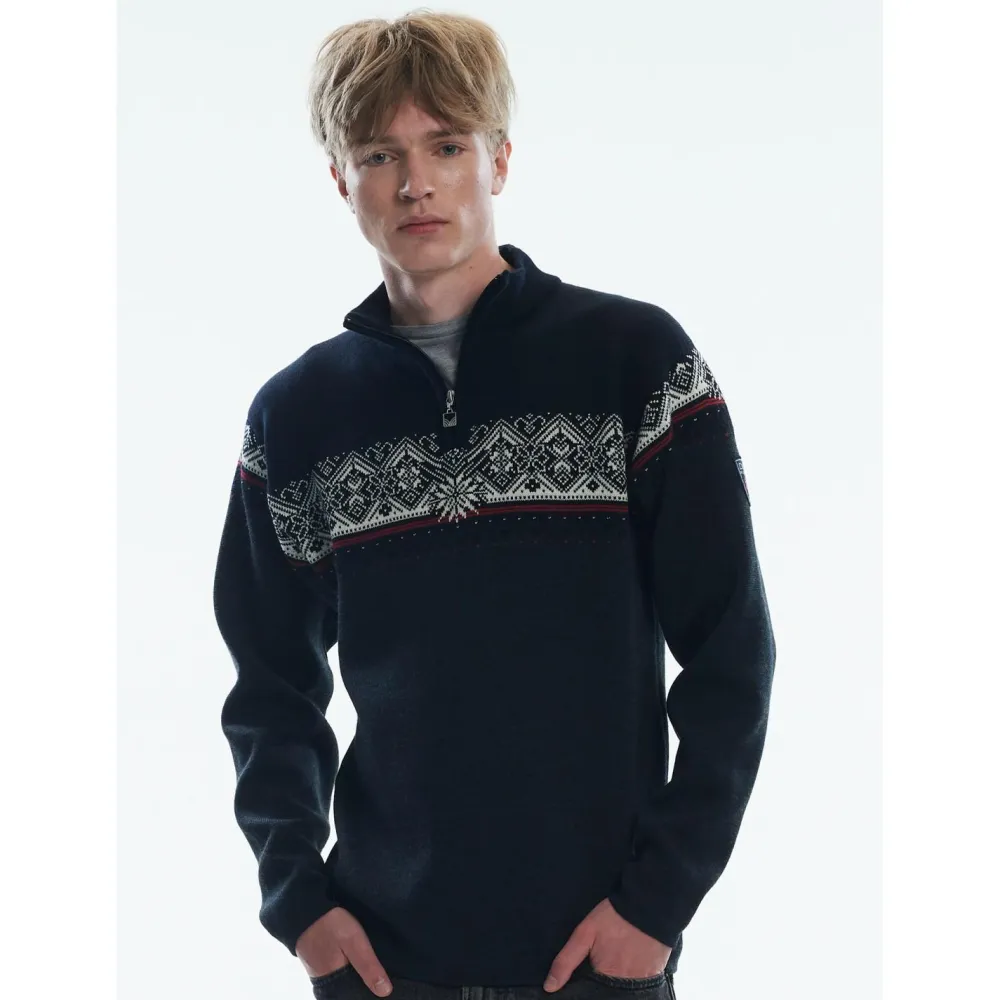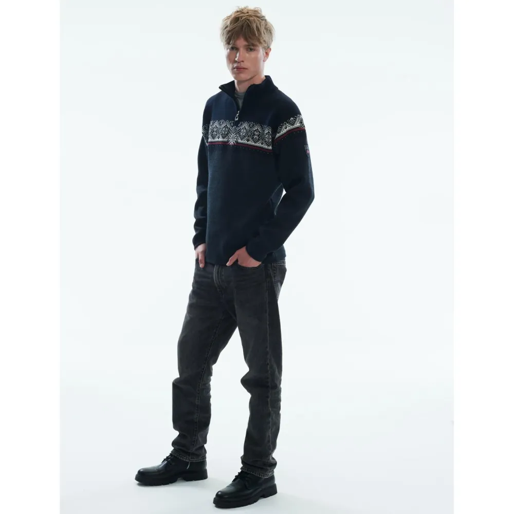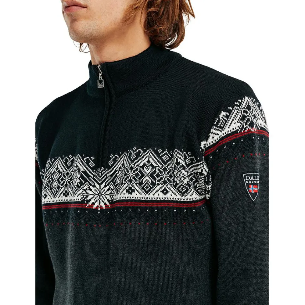 Ein hoher Stehkragen schützt den Hals- und Nackenbereich vor Zugluft und der kurze Reißverschluss erleichtert zudem das An- und Ausziehen. Der Dale of Norway typische Schnitt ist sportlich-elegant gehalten und das ansprechende Strickmuster rundet die Optik des Pullovers gekonnt ab.