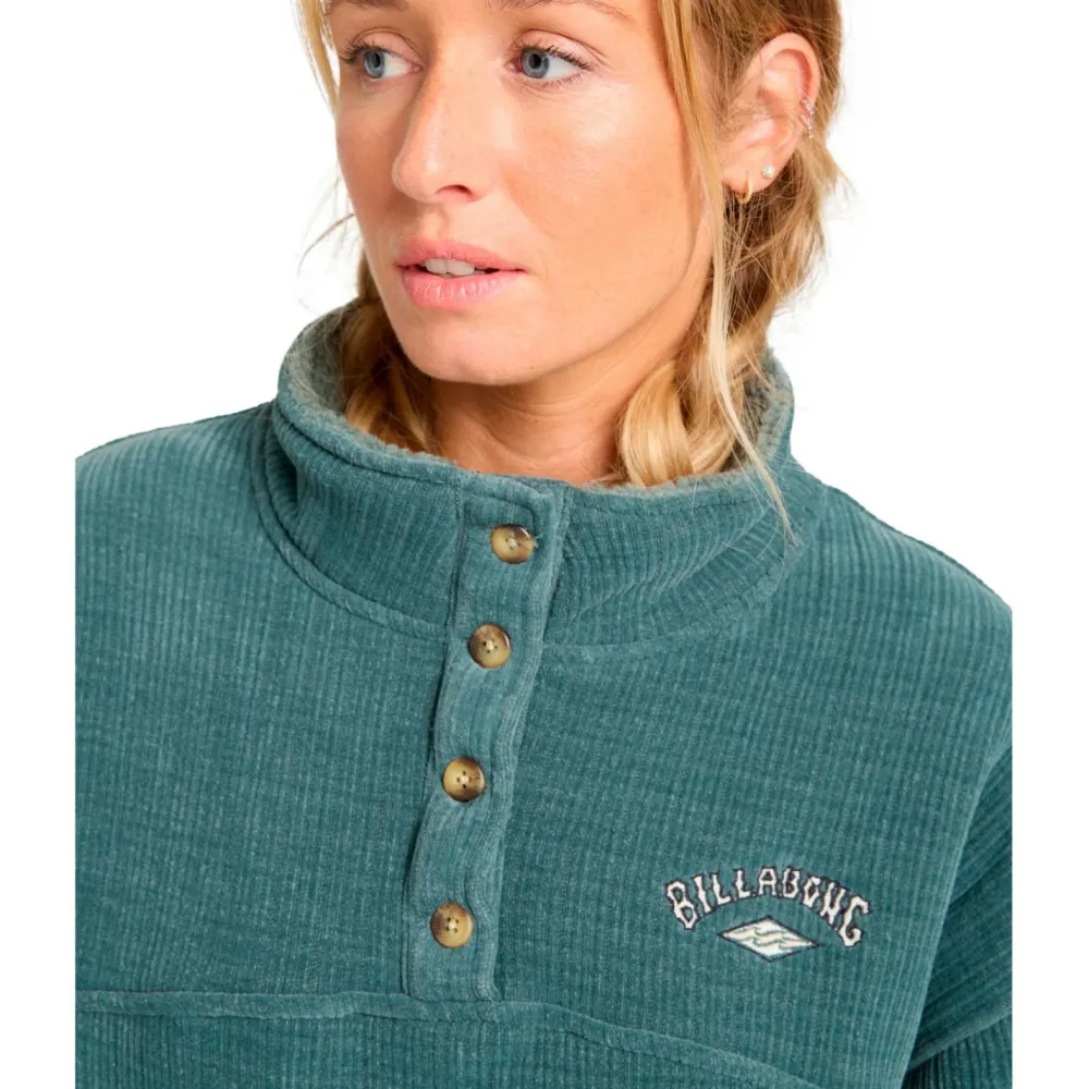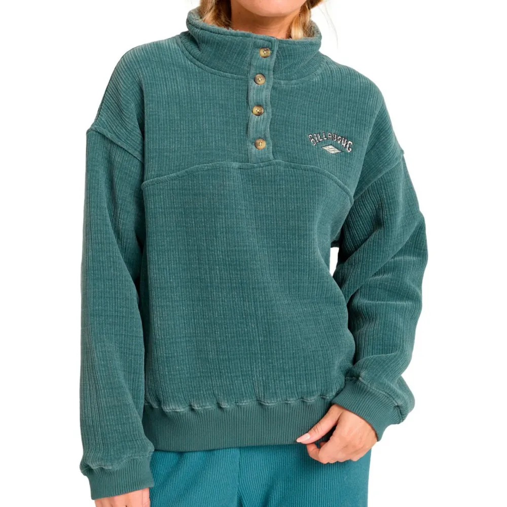 Ziehst Du Dir den Women’s All Mine Pullover von Billabong an, wirst Du sofort ein wohliges und gemütliches Gefühl haben. Dafür sorgt vor allem der weite, oversized Schnitt und der weiche Cord-Stoff.
