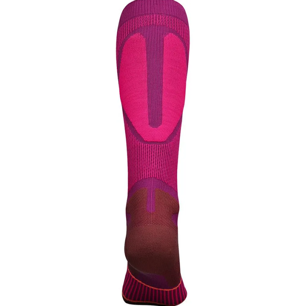 Die Kompression der Women’s Ski Performance Compression Socks von Bauerfeind Sports unterstützt die Wadenmuskulatur und hilft bei der Regeneration. Zusätzliche Polsterungen am Schienbein, dem Spann und der Wade beugen Druckstellen im Skischuh vor und erhöhen den Komfort, speziell an langen Tage auf der Piste, spürbar. Zudem sorgt eine spezielle Aussparung für eine Entlastung der Achillessehne.