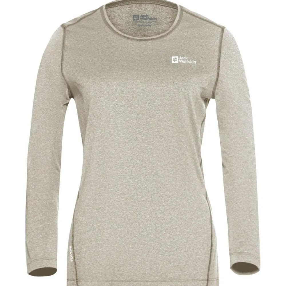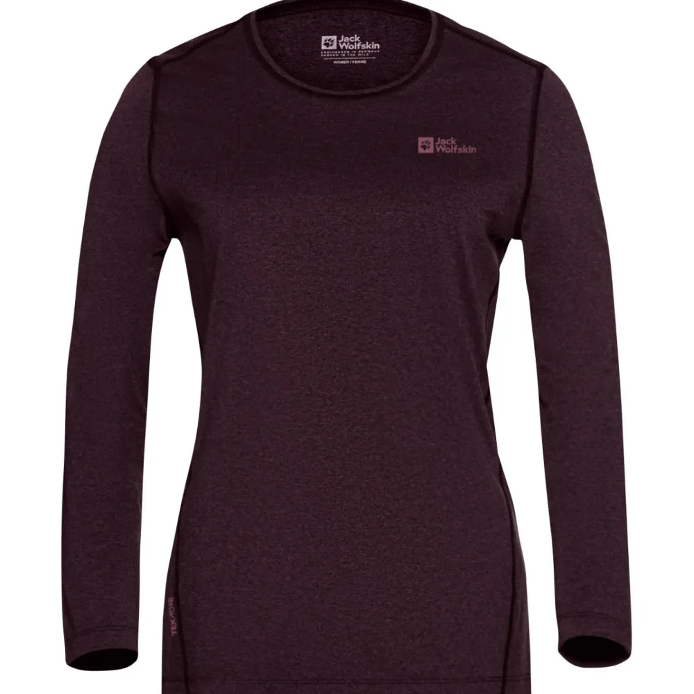 Das Women’s Sky Thermal L/S Tee von Jack Wolfskin eignet sich wegen seiner feuchtigkeitsregulierenden und schnelltrocknenden Funktion besonders gut als Baselayer bei sportlichen Aktivitäten. Die Q.M.C. Fasertechnologie sorgt dafür, dass Schweiß nach außen ab geleitet wird.