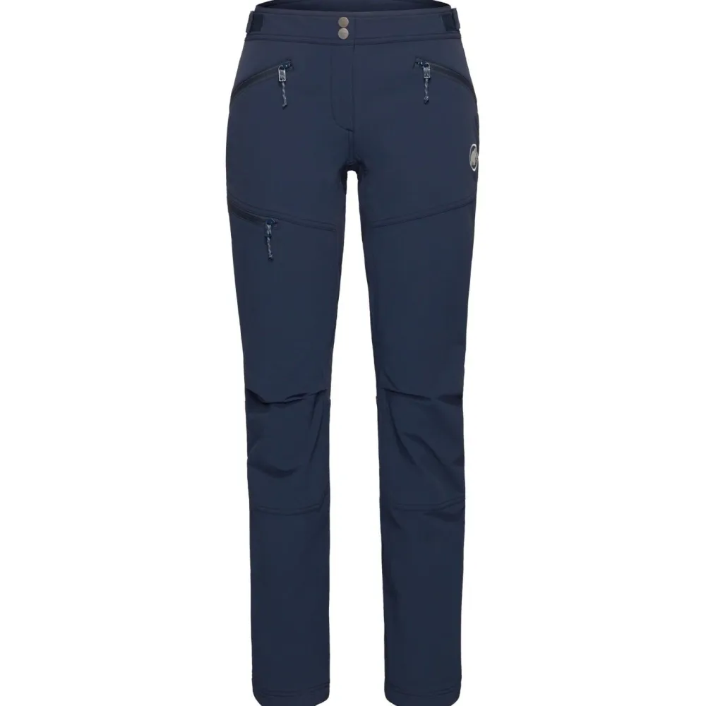 Die Women’s Taiss Softshell Pants von Mammut ist eine robuste Tourenhose aus großteils recyceltem Polyamid. Ihr atmungsaktives Softshell-Doppelgewebe punktet mit seiner hohen Abriebfestigkeit an Felswänden und in alpinem Gelände, während die Flexguard-Technologie mit ihrem 4‑Wege-Stretch die Bewegungsfreiheit zwischen den Tritten maximiert. Zu ihrer windabweisenden und atmungsaktiven Membran kommt eine wasserabweisende Imprägnierung hinzu.