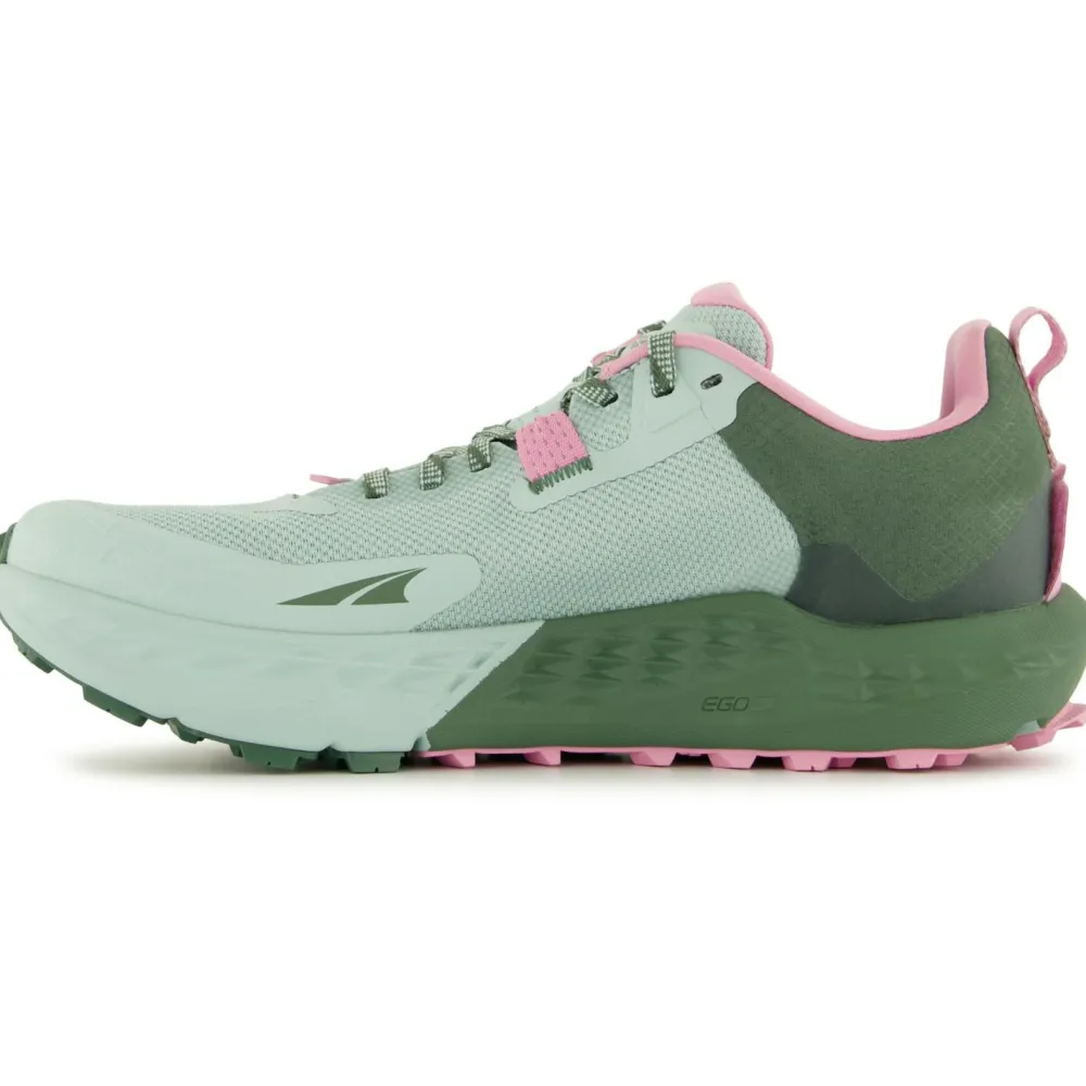 Der Women’s Timp 5 von den Laufsport-Spezialisten von Altra ist ein leichter Trailrunningschuh, der sehr erfolgreich ist, und bereits in der fünften Generation auftritt! Die etwas verbreiterte Zehenbox sorgt dabei dafür, dass sich die Zehen natürlich ausbreiten können, und entspannt so die Fußhaltung. Das sorgt einerseits für spürbar verbesserten Komfort, bietet andererseits aber auch mehr Stabilität beim Auf- und Absteigen am Berg. Und damit es rauf und runter mit richtig guter Traktion vorwärts geht, haben Altra hier eine Vibram Megagrip-Sohle verbaut, die besten Grip ermöglicht, und zwar egal, ob auf nassem oder trockenem Untergrund.