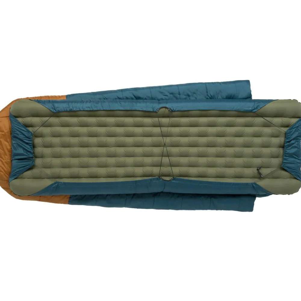 Der Echo Park 35 Kunstfaserschlafsack von Big Agnes bietet Dir schon beim ersten Hineinschlüpfen ein echtes Urlaubsgefühl. Die hochwertigen Fasern schmiegen sich an den Körper an und sorgen gleichzeitig für eine tolle Isolationsleistung. Damit Du nicht unkontrolliert von der Isomatte rutschen kannst, ist ein ausgeklügeltes Halterungssystem angebracht, mit dem die Matte direkt mit dem Schlafsack verbunden werden kann. Auch das Kopfkissen kann in einer vorgesehenen Tasche so untergebracht werden, dass es auch bei unruhigem Schlaf an Ort und Stelle bleibt.