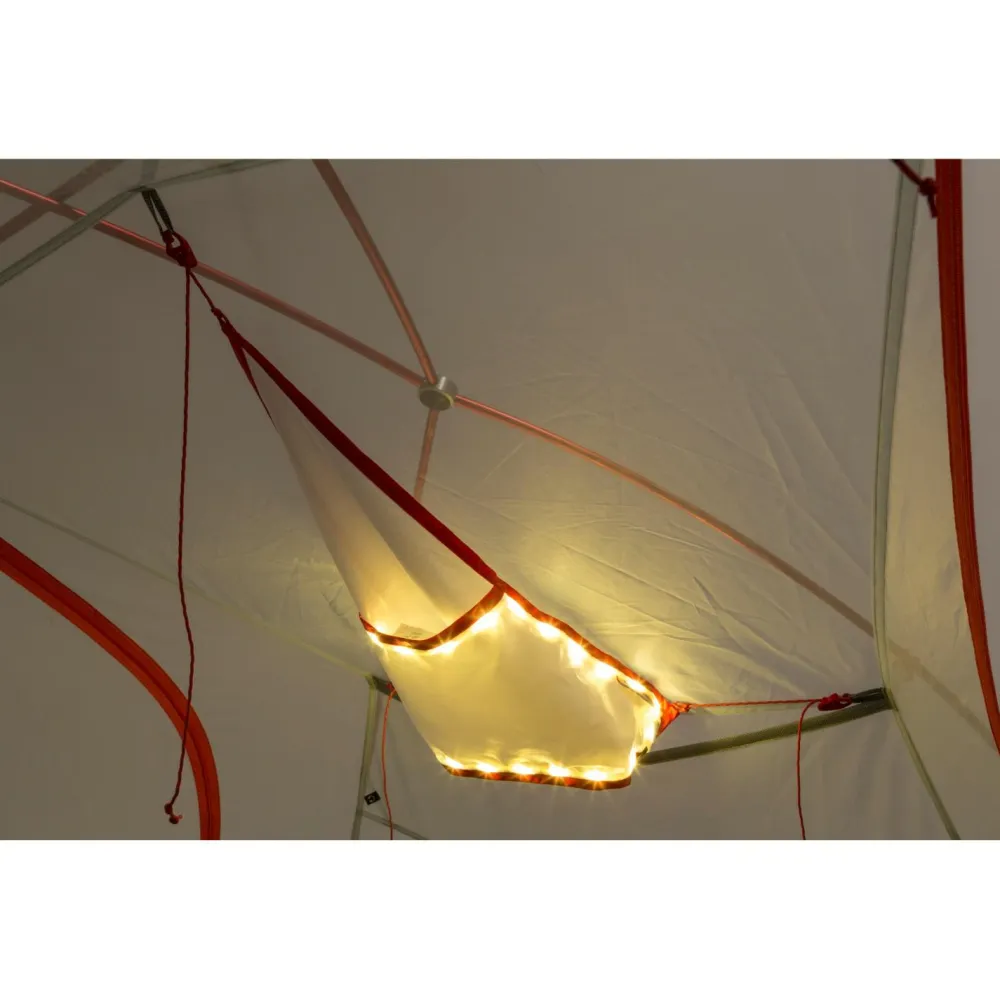 Bewahre Deine wichtigen Dinge griffbereit mit dem leichten mtnGLO Gear Loft – TRIANGLE auf, das an den Schlaufen in Deinem Big Agnes Zelt befestigt wird. Das Loft ist außerdem mit mtnGLO Zeltlicht-Technologie ausgestattet, damit die Abende im Zelt besonders gemütlich sind.