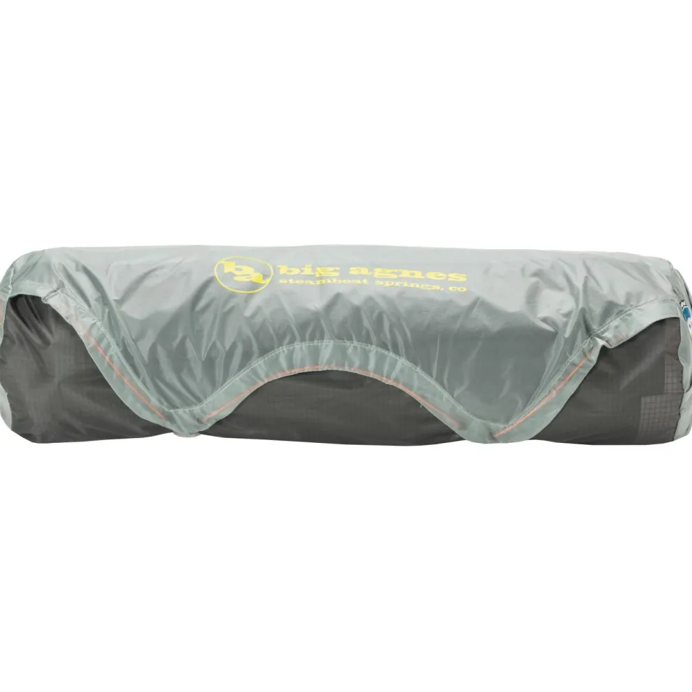 Die Spannriemen sind bereits von Big Agnes am Zelt befestigt, sodass der Auf und Abbau schnell und reibungslos vonstattengeht. Für eine bessere Sichtbarkeit bei schlechten Lichtverhältnissen sind reflektierende Elemente angebracht. So wird langfristig verhindert, dass Andere, oder Du selbst über das Zelt stolperst und Dir dabei nicht nur peinliche Blicke, sondern auch schlechte Laune erspart bleiben. Wenn schlechtes Wetter aufkommt und Du zum gemütlichen Entspannen im Zelt gezwungen wirst, kann dank wasserdichter Materialien im Trockenen gewartet werden, bis die Sonne wieder scheint. Wasserdichte Eigenschaften lassen Regen und Feuchtigkeit einfach abperlen und Du musst Dur keine Gedanken über Nässe im Zelt machen. Für den kompakten Transport des Zelts ist ein Packsack mit Kompressionsriemen im Lieferumfang enthalten.