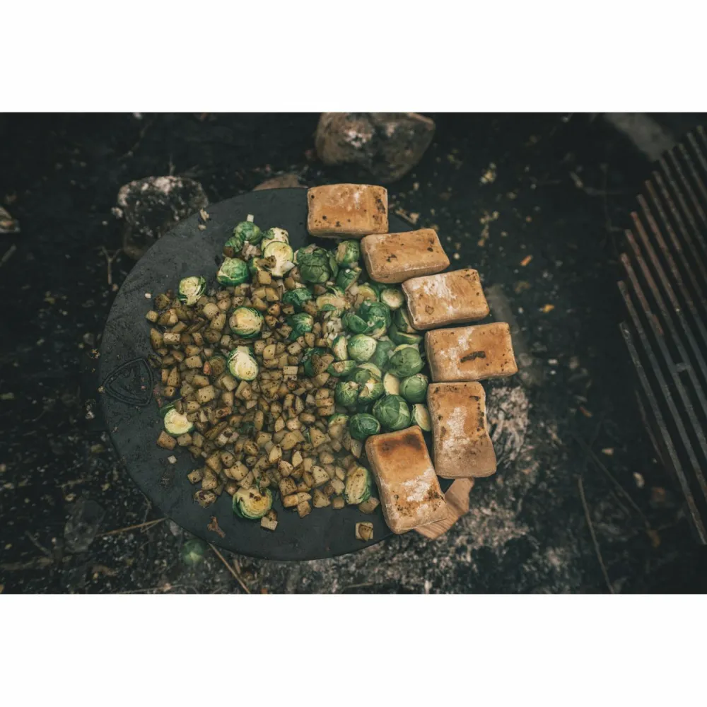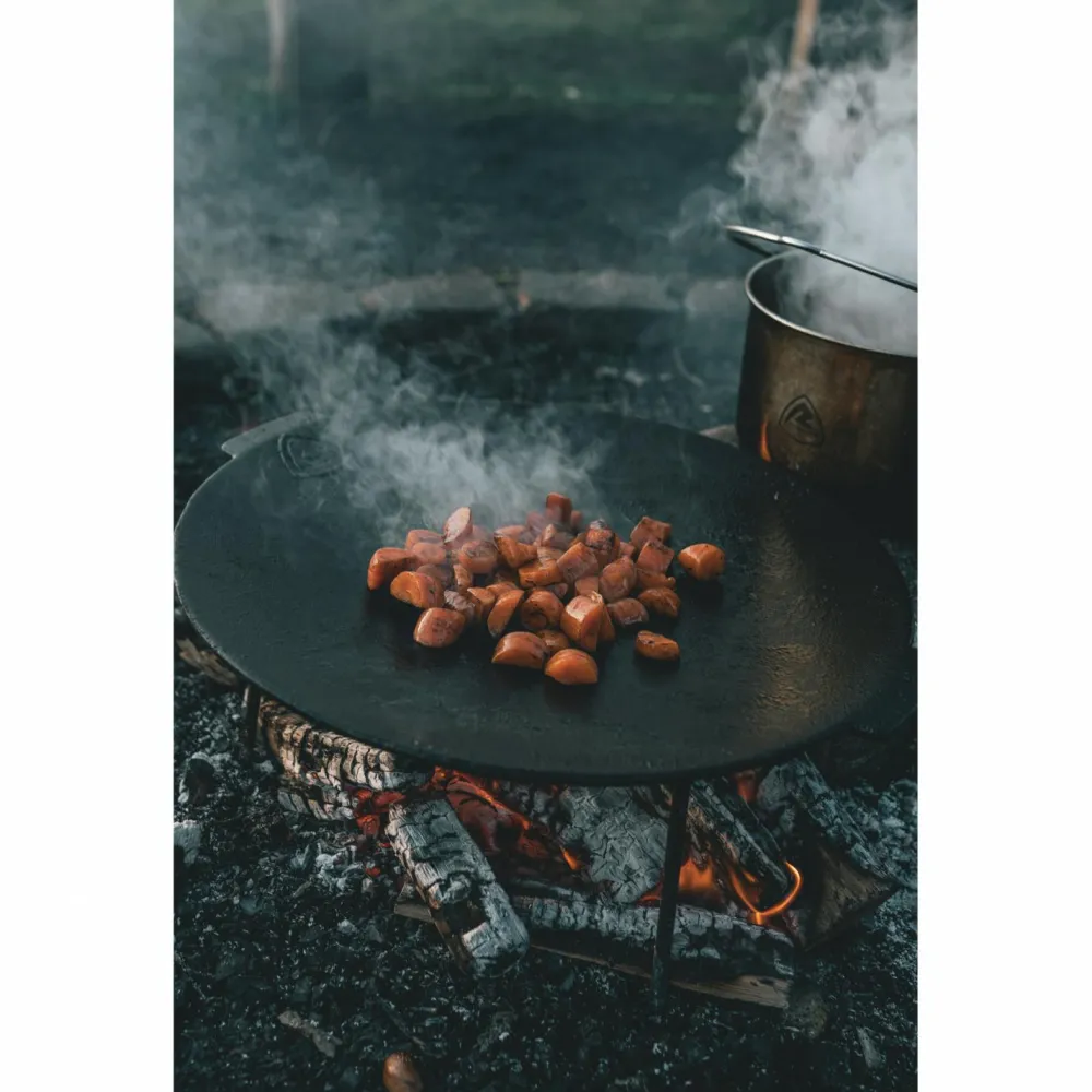 Mit der Bighorn 3 Legged Pan Pfanne von Robens lässt es sich gemütlich am Lagerfeuer kochen und brutzeln. Die flache Pfanne verfügt über ein Gestell mit drei Beinen und wird direkt über der Feuerstelle platziert. So lassen sich Fleisch, Fisch und Gemüse super anbraten mit der gusseisernen Grillpfanne.