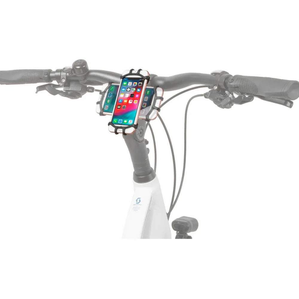 Die Lenkerhaltung kann einfach und schnell am Lenker befestigt werden. Das Smartphone lässt sich mit weichen Gummizügen sicher einspannen und wird so gut sichtbar und geschützt befestigt. Die Halterung ist außerdem um 360° drehbar, sodass Du an steilen Anstiegen, auf kurvigen Strecken und bei tief stehender Sonne einen optimalen Blick auf das Smartphone hast.