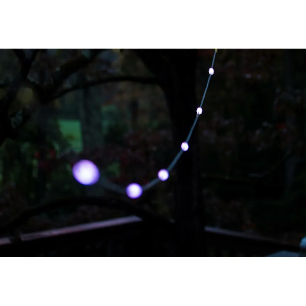 Die Lichter sind nicht nur farbenfroh, sondern auch extrem robust. Die bruchsicheren Birnen sind wetterfest und halten den Herausforderungen des Outdoor-Lebens stand. Egal ob Regen, Wind oder Sonnenschein – Deine Beleuchtung bleibt zuverlässig und langlebig. Die Lichter können bis zu 40 Stunden im weißen Modus und 26 Stunden im Farbmodus leuchten, sodass Du lange Freude an Deiner Beleuchtung hast.