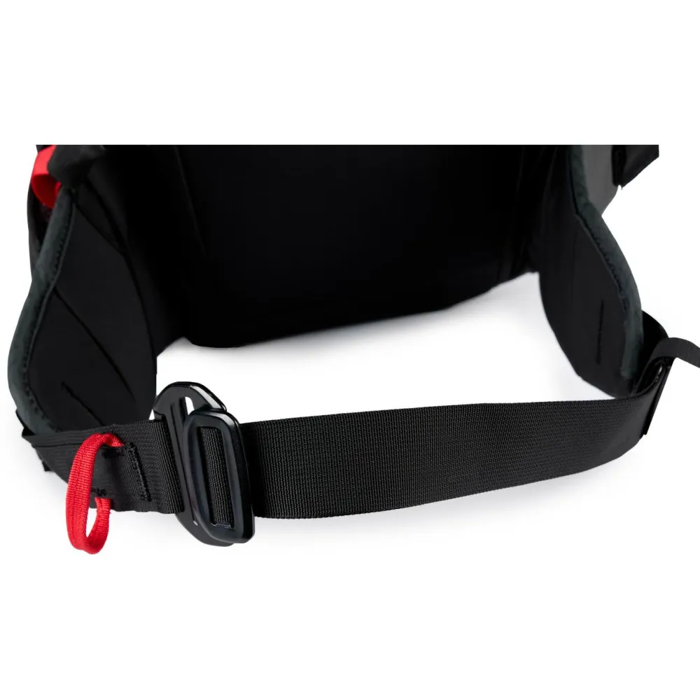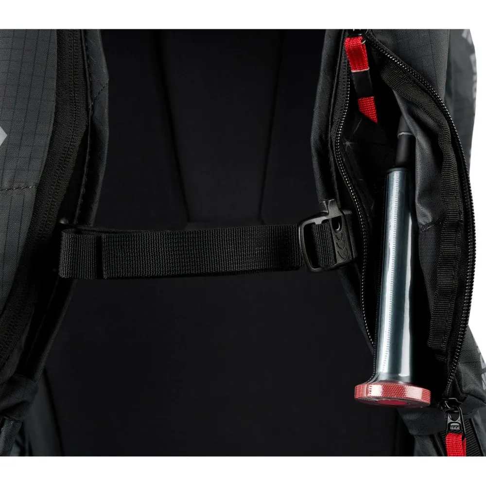 Der Rucksack selbst bietet mit seinen 35 Litern ausreichend Platz für Mehrtagestouren und Ausbilder, die viel Ausrüstung mit sich schleppen müssen. Ein LVS-Fach, eine Hüftgurttasche, eine Helmhalterung und Eispickel- sowie Skihalterung sorgen für den nötigen Organisationsgrad am „Geschirr“. Der Auslösegriff kann individuell im rechten oder linken Schultergurt verlegt werden.