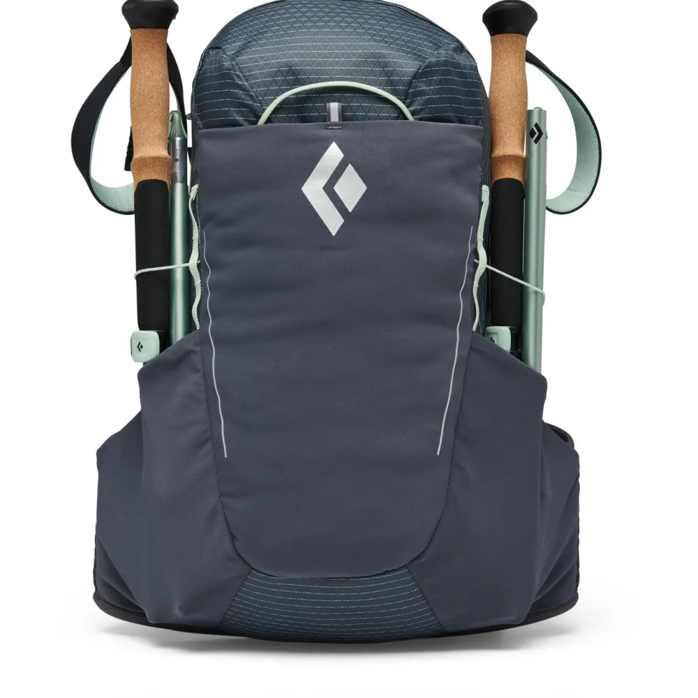 Leicht zugängliche Seitentaschen und Fächer für die Trekkingstöcke ergänzen den funktionellen Wanderrucksack. Black Diamond fertigt den atmungsaktiven Rucksack aus recycelten Rohstoffen und komplettiert die funktionelle Ausstattung mit diversen Extra-Fächern, Befestigungsmöglichkeiten und wasserabweisenden Reißverschlüssen.