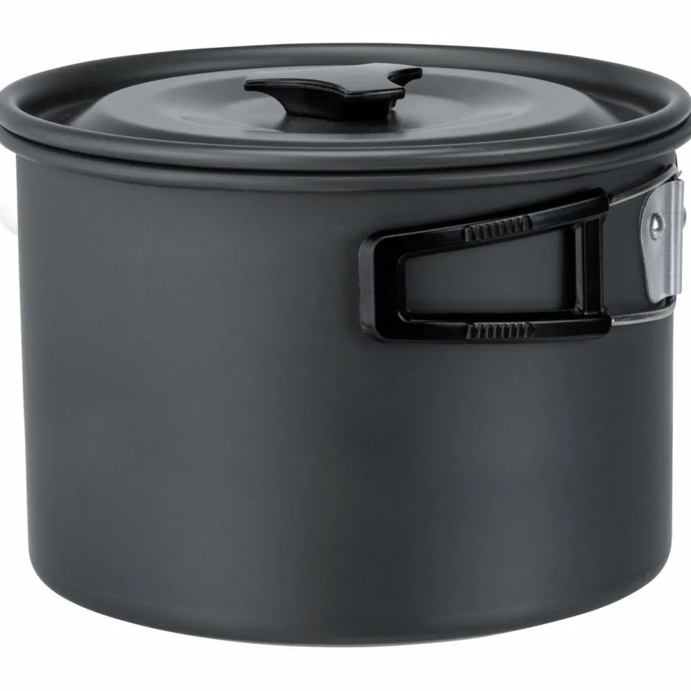 Perfekt für die Campingküche: das Packpot Ultralite 19 von Brunner! Das 4-teilige Kochset aus leichtem Aluminium besteht aus zwei unterschiedlich großen Töpfen mit Deckel, einer Pfanne sowie einem Holzlöffel. Die klappbaren Griffe mit hitzebeständiger Silikonbeschichtung ermöglichen eine bequeme Handhabung, während die mitgelieferte Tragetasche den Transport erleichtert.