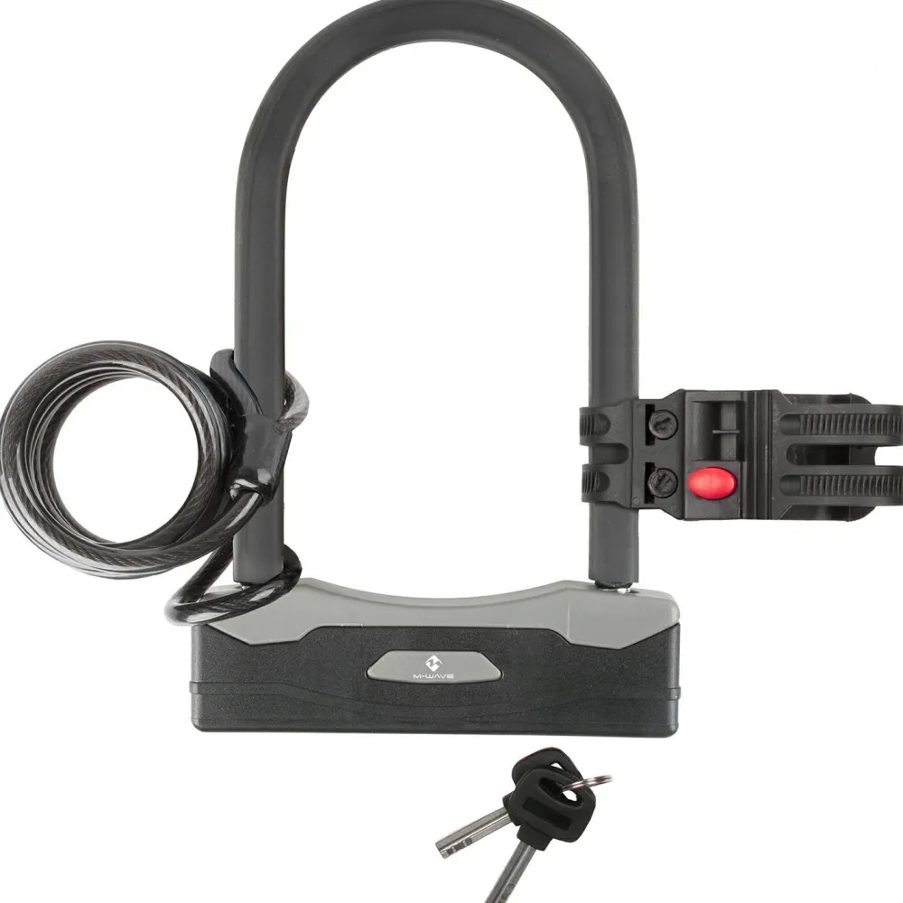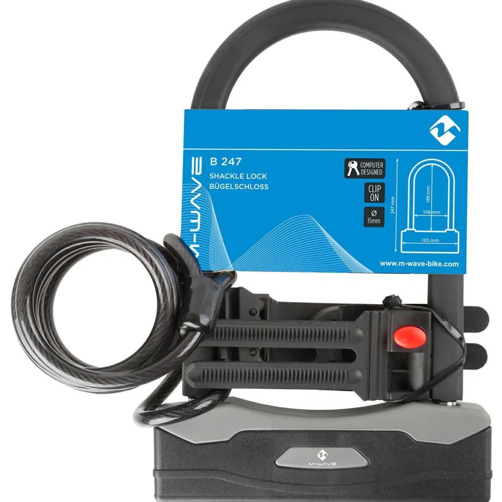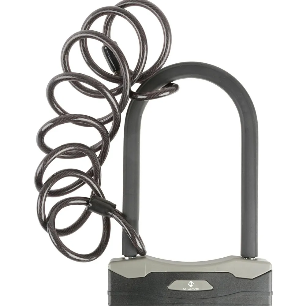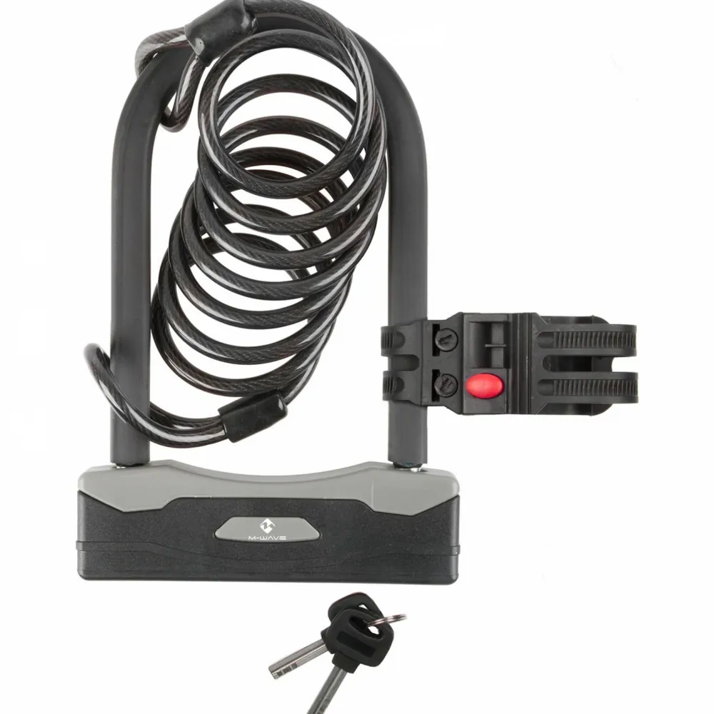 Das Bügelschloss mit Spiralgabel B & S von M-Wave kommt mit zwei unterschiedlichen großen Schlaufenenden. So hast Du die maximale Flexibilität beim Anketten Deines Bikes. Der Radius kann so beliebig verändert werden. Der quadratische Bügelquerschnitt erhöht die Sicherheit des Schlosses zusätzlich.