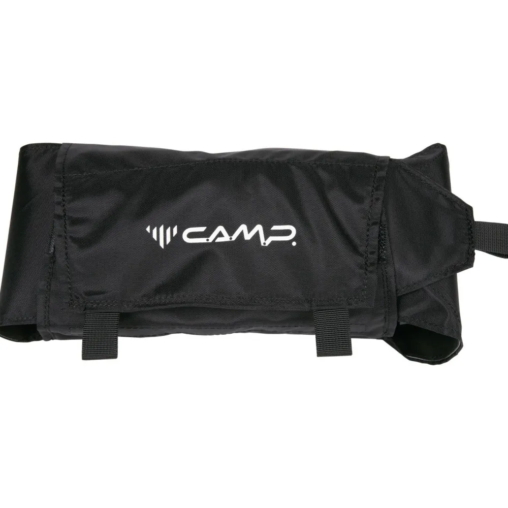 Die Foldable Crampon Bag Steigeisentasche von C.A.M.P. ist extrem leicht und kann an vier Seiten geöffnet werden, sodass das Aus– und Einpacken der Steigeisen schnell und einfach vonstattengeht. Die Materialien sind sehr robust und schrecken auch vor Kontakt mit den scharfen Steigeisen Zacken nicht zurück. Ein Fach für Zubehör und einer Schlinge zur Befestigung am Rucksack ist zudem integriert.