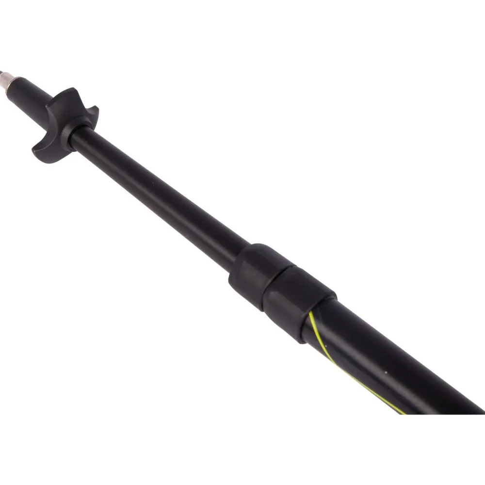 Der Laser-Teleskopstock von den italienischen Bergsport-Spezialisten von C.A.M.P. ist der Leichteste im Portfolio des Herstellers. Entsprechend eigent er sich für lange Treks und anspruchsvolle Wanderungen, bei denen kein Gramm zu viel dabei sein soll. Dieses Konzept zieht sich durch die gesamte Konstruktion des Laser: von den reduzierten Querschnitten der Aluminiumrohre über das Minimal-Design der Handschlaufe bis hin zum Teller mit lediglich 30mm Durchmesser. Das intern untergebrachte, Rotating Lock genannte und durch Drehen zu bedienende Verriegelungssystem trägt zur aufgeräumten Optik ebenfalls ganz entschieden bei. Für den bei allem Minimalismus notwendigen Komfort sorgt der Griff aus gut dämpfendem EVA, der außerdem extra lang am Schaft herabläuft, sodass Du zahlreiche Möglichkeiten hast, umzugreifen, beispielsweise in sehr steilem Gelände.