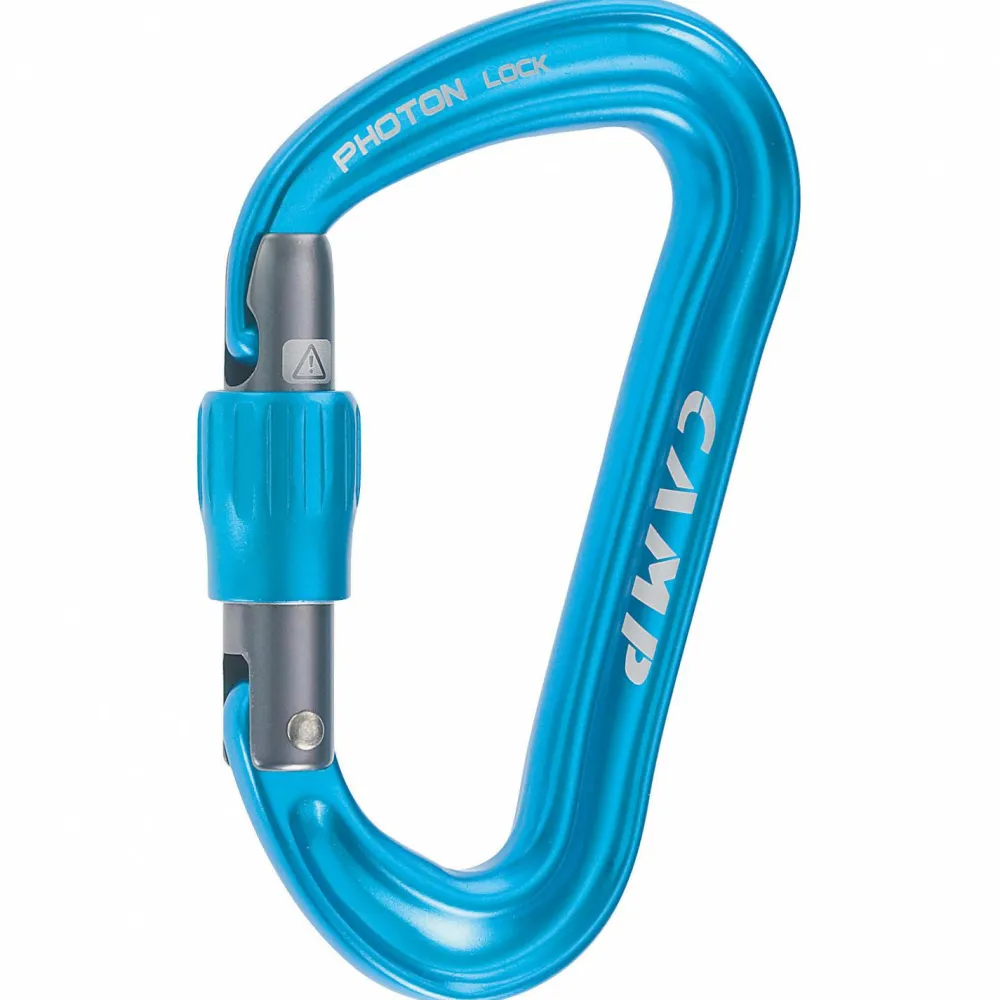 Mit seinem geringen Gewicht eignet sich der Photon Lock Karabiner von Camp perfekt als Begleiter für lange Abenteuer an den richtig hohen Felswänden. Die angenehm zu bedienende Schraubsicherung ist mit einer eingelaserten Markierung versehen. So kann kontrolliert werden, ob der Schrauber tatsächlich richtig geschlossen ist und damit die angegebenen Sichereitswerte erreicht. Perfekt eignet er sich auch dank seiner Form für den Standplatzbau im Gebirge. Um dem Seil so wenig wie möglich zu schaden, verfügt der Karabiner über einen breiten Steg. So entsteht viel Fläche und das Seil wird nicht so stark strapaziert.