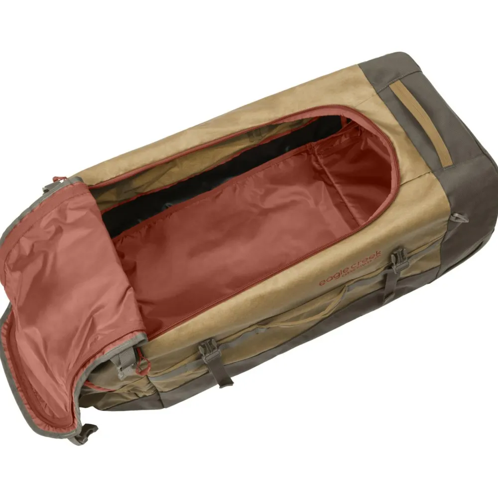 Die Cargo Hauler Duffel 130 von Eagle Creek, ist eine ausgetüftelte Duffel für unterschiedlichste Art von Reisen. Die Duffel hat Rucksacktragegurte, welche sich in der vorderen Reißverschlusstasche verstauen lassen. Zusätzlich sorgen einige Tragegriffe für vielseitige Tragemöglichkeiten. Mit einem Schloss, lassen sich alle Reißverschlüsse an einem zentralen Verschlusspunkt verschließen. Durch die robusten Rollen, auch für unwegsames Gelände, wird Dein Rücken geschont. Das Hauptfach lässt sich U – Förmig öffnen und ist durch eine Reißverschluss - Abdeckleiste geschützt. Das Seitenfach hat einen wetterfesten Reißverschluss und eine Mesh – Innentasche.