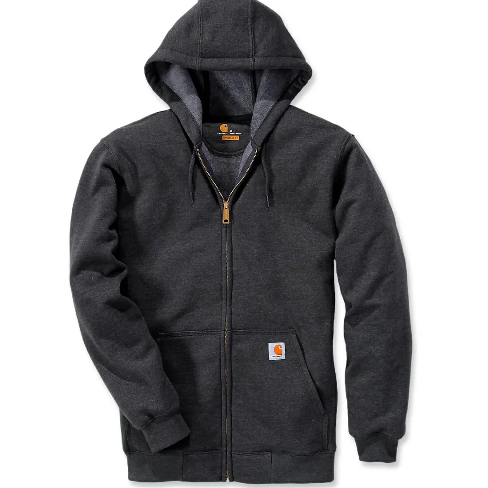 Das Zip Hooded Sweatshirt von Carhartt ist ein gemütlicher Hoodie mit weichem Fleecefutter. Er ist ideal für den Alltag geeignet und passt zu den meisten Outfits. Der Look ist klassisch und sieht einfach gut aus. Lediglich das dezente Logo an der Tasche hebt sich vom schlichten Stil ab und sorgt für einen lässigen Look. Hierdurch fügt sich der Hoodie perfekt ins Alltagsoutfit ein und passt zur Jeans ebenso wie zur Chino, Jogginghose oder Boardshort.