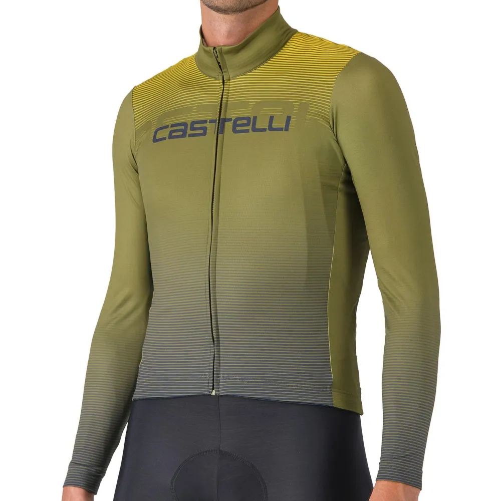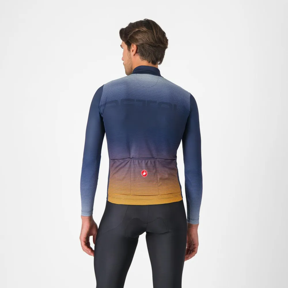 Ein Plus an Komfort und Wärme an kalten Tagen gibt’s mit dem Apice Thermal Jersey von Castelli. Dieses langärmelige Radtrikot überzeugt dabei durch seine sportliche Passform und den körpernahen Schnitt. Zusätzlich ist das Material flexibel und ermöglicht Dir somit eine gute Bewegungsfreiheit. Die angeraute Innenseite ist sehr weich und fühlt sich auch direkt auf der Haut angenehm an. Abgesehen davon wurde das Trikot mit drei geräumigen Rückentaschen ausgestattet. Diese sind ebenfalls flexibel und bieten Müsliriegel, Smartphone und Co. zuverlässig Platz.