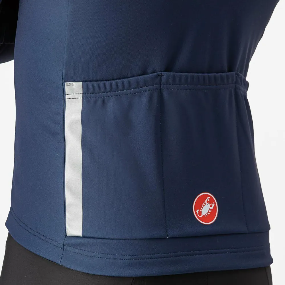 Der Entrata Thermal Jersey von Castelli ist perfekt für Touren bei kühleren Temperaturen. Kombiniert mit einer Weste hält es dich auch an Herbst- oder milden Wintertagen angenehm warm. Das Jersey besteht aus wunderbar weichem Fleece und hat drei geräumige Rückentaschen. Ein elastisches Silikonband am Saum sorgt für eine gute Passform. Reflektierende Streifen erhöhen die Sichtbarkeit im Straßenverkehr. Solo ist das Jersey am besten für Temperaturen zwischen 12°C und 18°C geeignet.