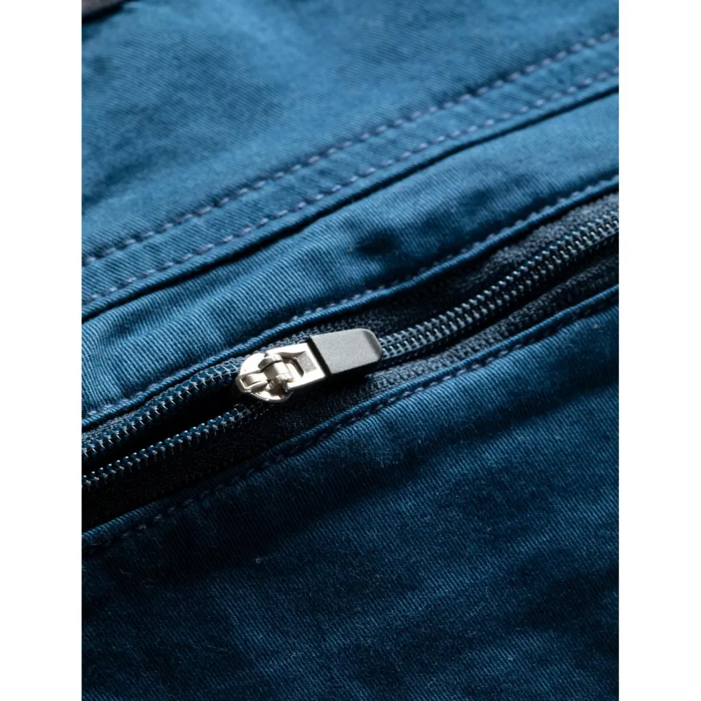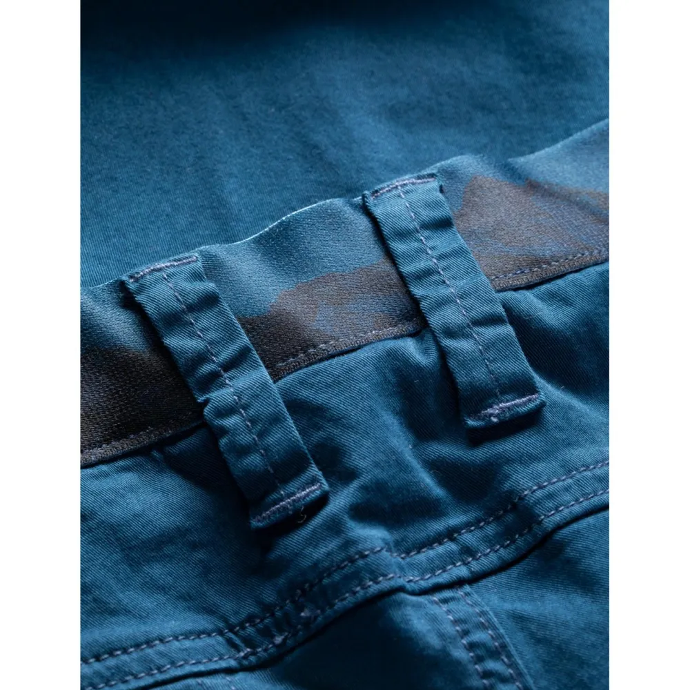 Es gibt wohl nichts Bequemeres wie einen elastischen Bund mit Druckknopf bei einer Kletterhose. Es entstehen dadurch keine Druckstellen mit dem Klettergurt und die Hose bleibt bei jedem Tritt, wo sie hingehört. Für extra mehr Beweglichkeit sorgt der praktische Zwickel im Schritt. Zwei Gesäßtaschen, zwei Einschubtaschen und eine Beintasche mit Reißverschluss bieten Platz, um wichtige Dinge zu verstauen.