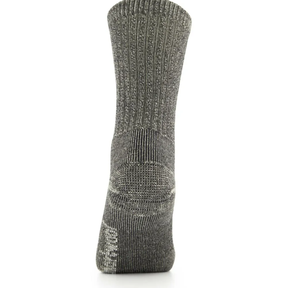 Die atmungsaktiven Trekkingsocken haben an den stark beanspruchten Stellen eine verstärkende Polsterung für ein weicheres Trittgefühl. Ein elastischer Einsatz unterstützt das Fußgewölbe ergonomisch. Um Blasenbildung und Scheuern vorzubeugen ist der Zehenbereich komplett nahtfrei konstruiert.