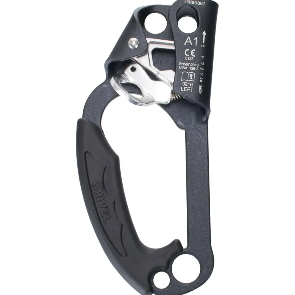 Für ein angenehmes Handling beim Aufsteigen am Seil – der A1 Ascender von Grivel! Die Steigklemme aus Aluminium bietet mit ihrem patentierten Klemmmechanismus alles, was man von einer stabilen, vielseitigen Steigklemme erwartet. Sie kommt in zwei Ausführungen für Links- und Rechtshänder und liegt mit ihrem gummierten Griff sicher und angenehm in der Hand. Mit dem leichtgängigen Sicherheitshebel ist der A1 Ascender schnell ins Seil eingehängt und kann dank zahlreicher Löcher auf vielseitige Weise mit Karabinern verbunden werden – perfekt für verschiedenste Einsatzzwecke bei alpinen Mehrseillängentouren, Bigwall-Abenteuern oder Einsätzen am Fixseil!