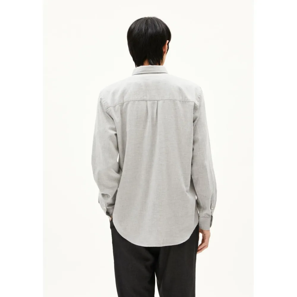 Das Langarmhemd Araamo von ARMEDANGELS aus Bio-Baumwolle ist eine solide Wahl für alle, die draußen unterwegs sind und dabei nicht auf Komfort und Umweltbewusstsein verzichten wollen. Der Stoff fühlt sich angenehm weich auf der Haut an und ist gleichzeitig robust.