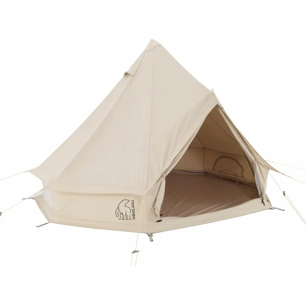 So ist man auch in einer großen Gruppe bequem und komfortabel untergebracht: Das Asgard 19.6 Technical Cotton Tipi Zelt von Nordisk! Das Zelt aus robustem Baumwoll-Mischgewebe verfügt immer über ein angenehmes Innenklima und bietet viel Platz für bis zu 10 Personen. Durch die große Innenhöhe hat man viel Platz und Kopffreiheit, ideal um sich im Zelt richtig wohl zu fühlen.