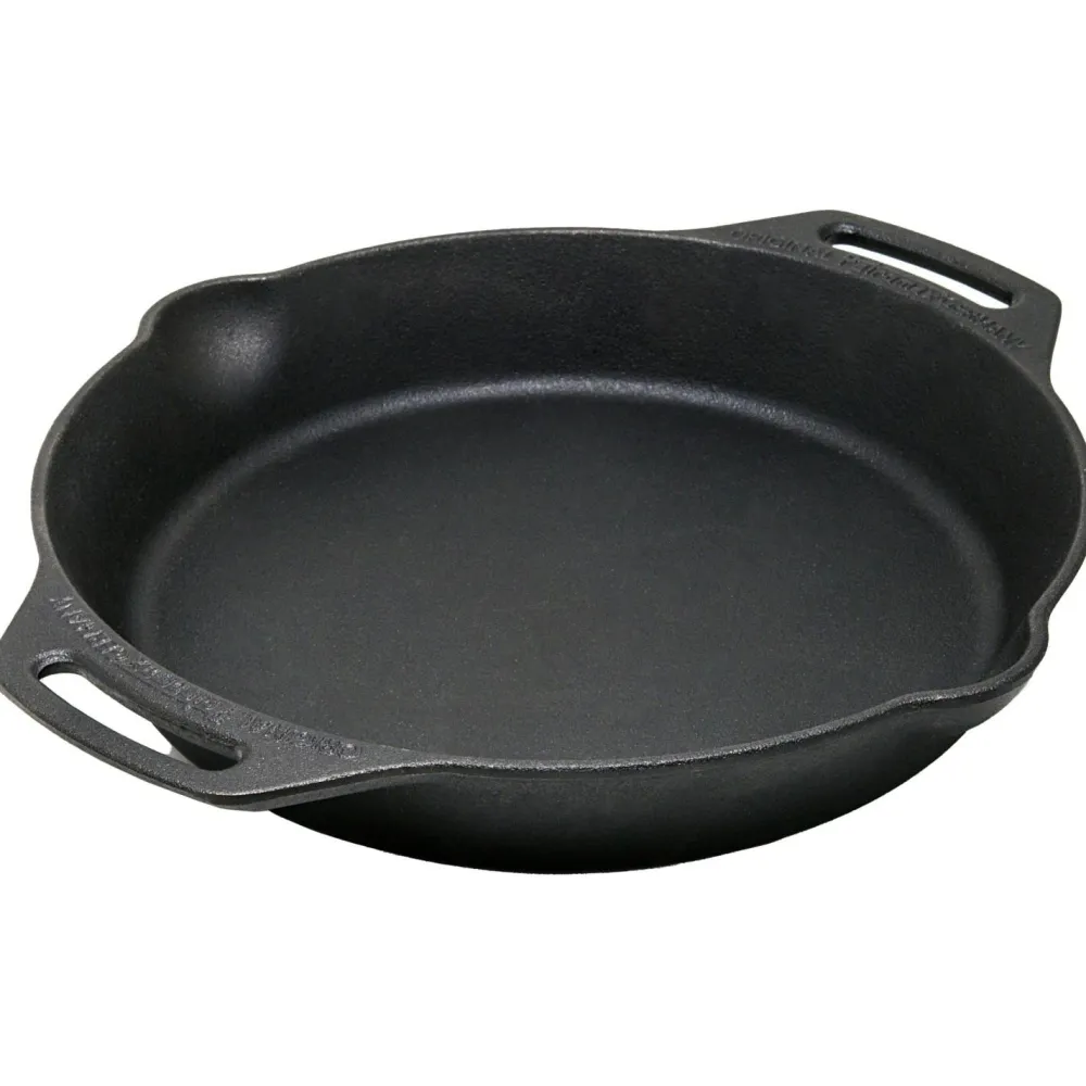 Drei Größen und zwei Varianten – da fällt die Wahl nicht leicht. Dabei eignet sich die Petromax Feuerpfanne ideal für Fleisch, Fisch oder Gemüse. Scharfes Anbraten gelingt mit der gusseisernen Pfanne ganz hervorragend, egal ob auf dem heimischen Küchenherd oder in bester Outdoor-Manier über dem offenen Feuer (geeignet für Induktion / Gas / Ceran). Die Gusspfannen gibt es jeweils mit zwei Henkeln oder als klassische Bratpfanne mit Stiel und können dank ihrem Seasoned Finish direkt, ohne vorheriges Einbrennen, verwendet werden. Die raue Patina nimmt Fette und Aromen auf und gibt diese bei jedem Gebrauch wieder ein Stück weit ab – so entsteht der einzigartig charakteristische Geschmack echter, robuster Gusseisenpfannen.