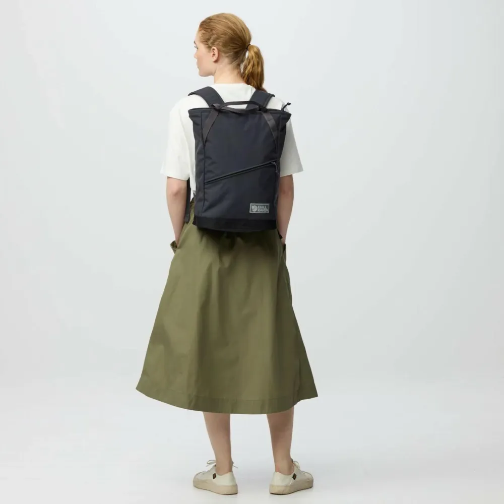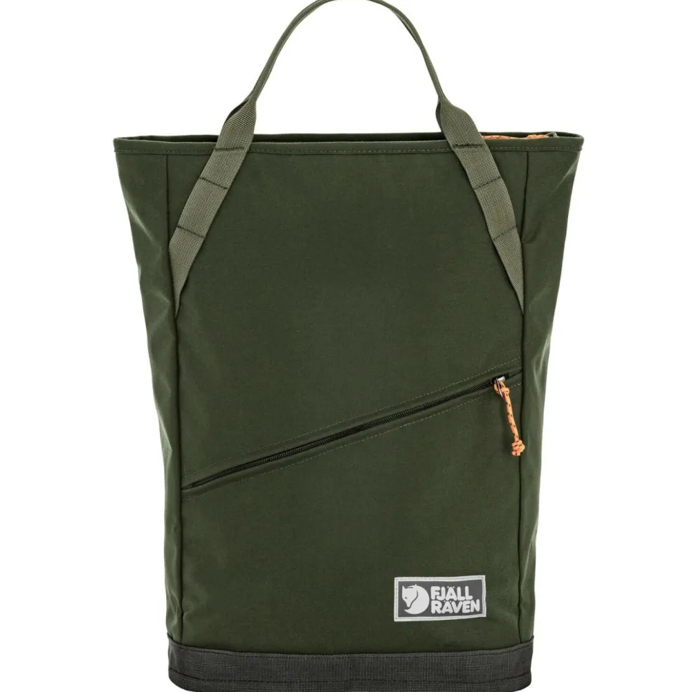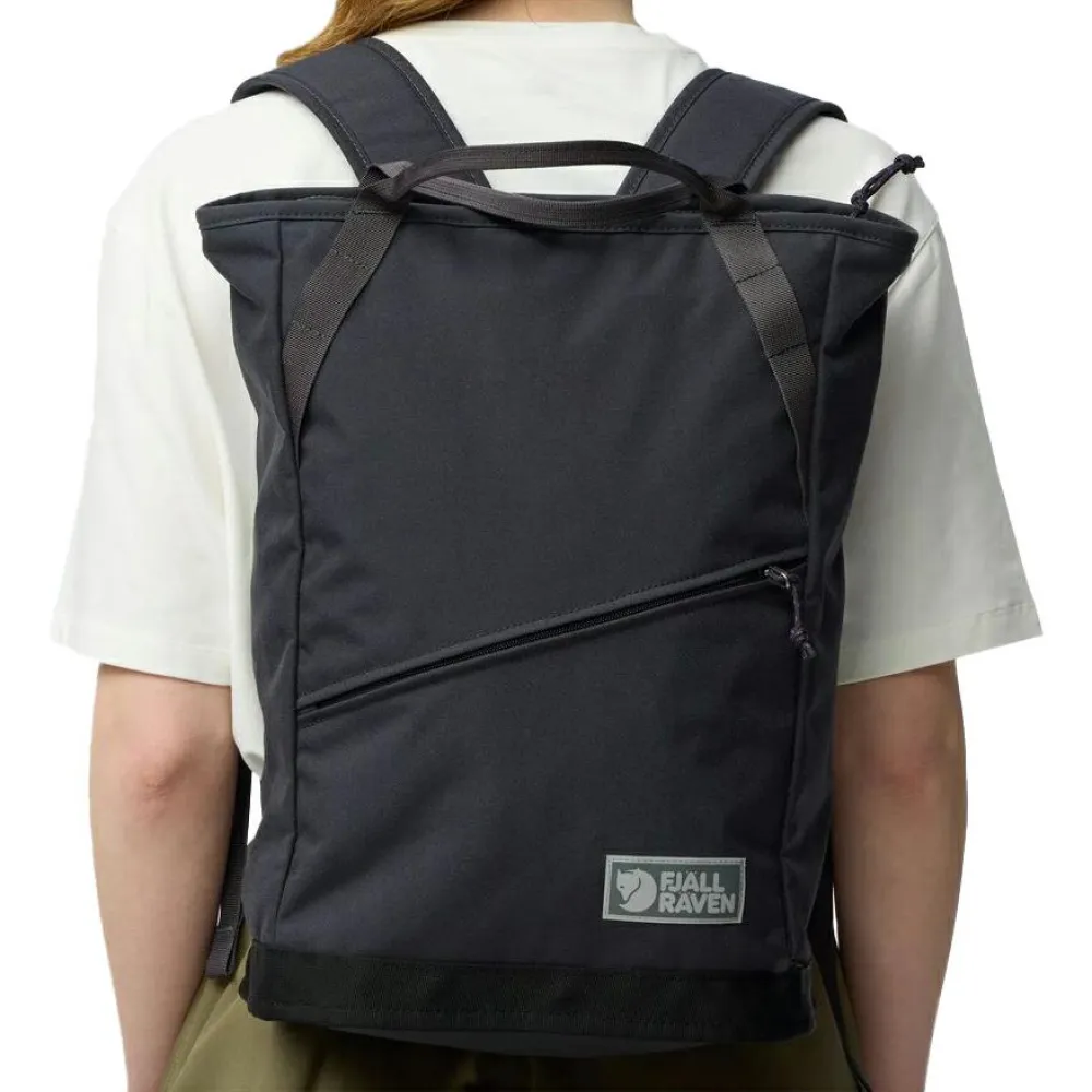 Der Vardag Totepack 22 Daypack von Fjällräven ist Tragetasche und Rucksack in Einem. Dafür verfügt die Tasche über breite Rucksackträger und robuste Tragegriffe auf der Oberseite. Außerdem ergänzen ein integriertes Laptopfach und ein Außenfach für Dokumente und Accessoires die praktische Mischung aus Tasche und Rucksack. Der Rucksack bietet 22 Liter Stauraum und besteht aus besonders strapazierfähigem 500D Polyamid, das wiederum vollständig aus recycelten Rohstoffen gewonnen wird. Per Reißverschluss lässt sich das Vardag Totebag 22 bequem und sicher verschließen.