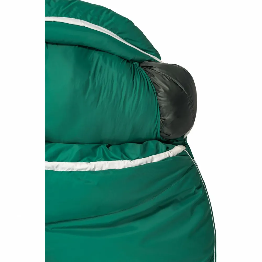 Für eine optimale Wärmeisolation sorgt die DownWool Füllung des Schlafsacks. Sie besteht aus 70% Entendaunen, die eine Bauschkraft von 650+ cuin und ein Mischungsverhältnis von 90/10 (Daune/Feder) aufweisen, und aus 30% Wolle. Positive Eigenschaften von Daune und Wolle werden in dieser Füllung kombiniert. Ideale Wärmeisolation und geringes Eigengewicht werden mit der DownWool Füllung optimal kombiniert und liefern ein trockenes und warmes Schlafklima.Zusätzlich dient ein praktischer Zwei-Wege-RV zum leichten Öffnen und Schließen, während eine Außen- und Innentasche sicheren Stauraum für Wertgegenstände bieten. Möchte man es etwas bequemer haben für die Nacht, dann kann man ein weiches Kleidungsstück in das dafür vorgesehene Kopfkissenfach schieben.